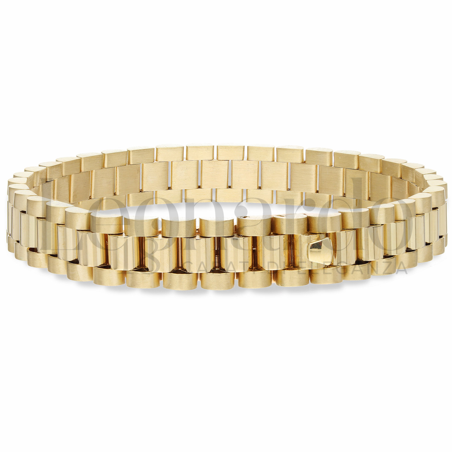 Bracciale da Uomo, a Piastre Agganciate, finitura lucida e Rigata in Oro Giallo e Oro Bianco
