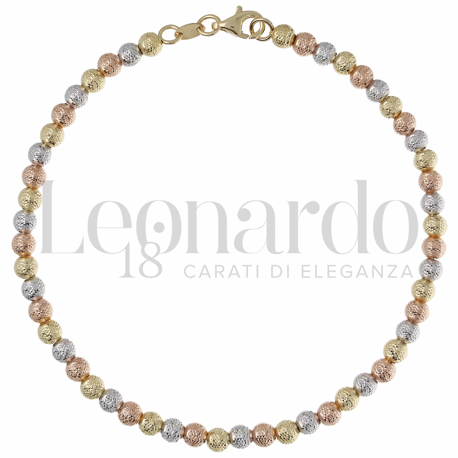 Bracciale pallinato, con sfere da 4 mm, finitura Diamantata Mille Facce, in Oro Rosa, Oro Giallo e Oro Bianco.