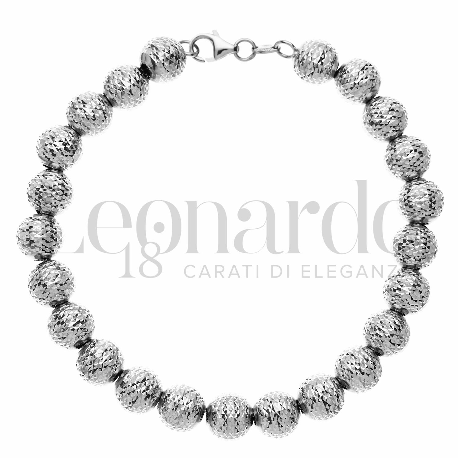 Bracciale Pallinato Light, con sfere da 6 mm, finitura diamantata Mille Facce, in Oro Bianco