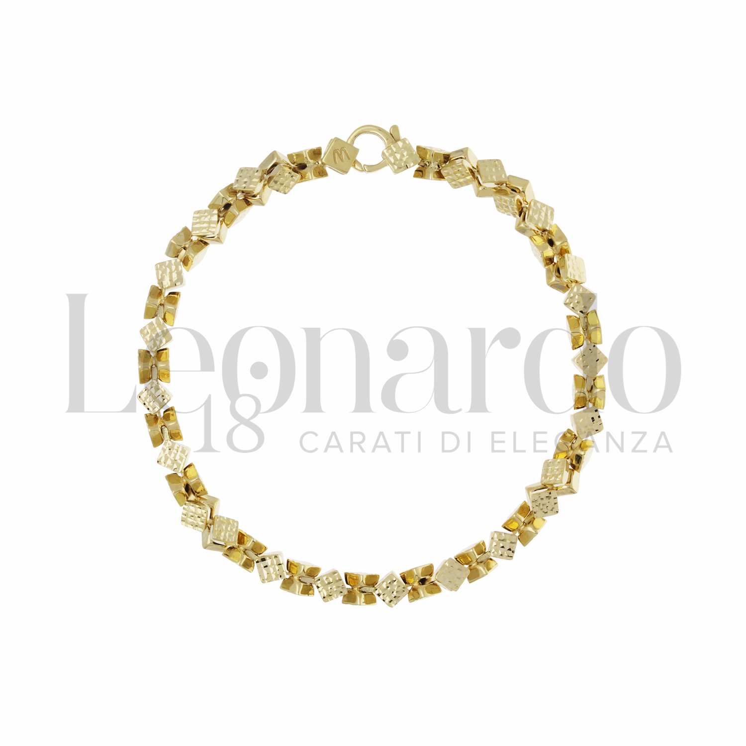 Bracciale a Catena Tubolare da Uomo, a 19 cm, finitura Lucida e Diamantata. in Oro Giallo.