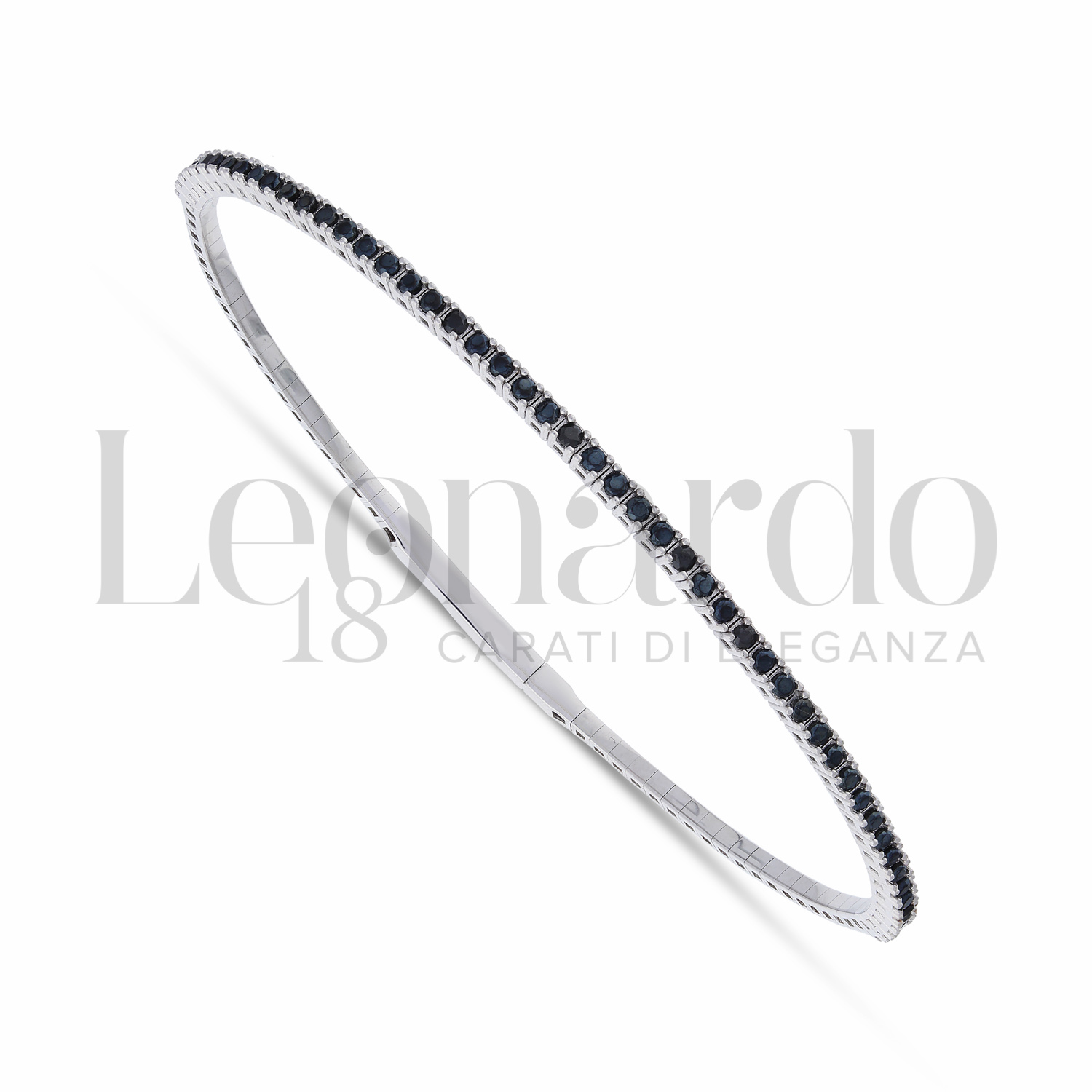 Mezzo Tennis, modello Rigido, con Zirconi Neri da 1,50 mm, chiusura a Cassetta, in Oro Bianco.