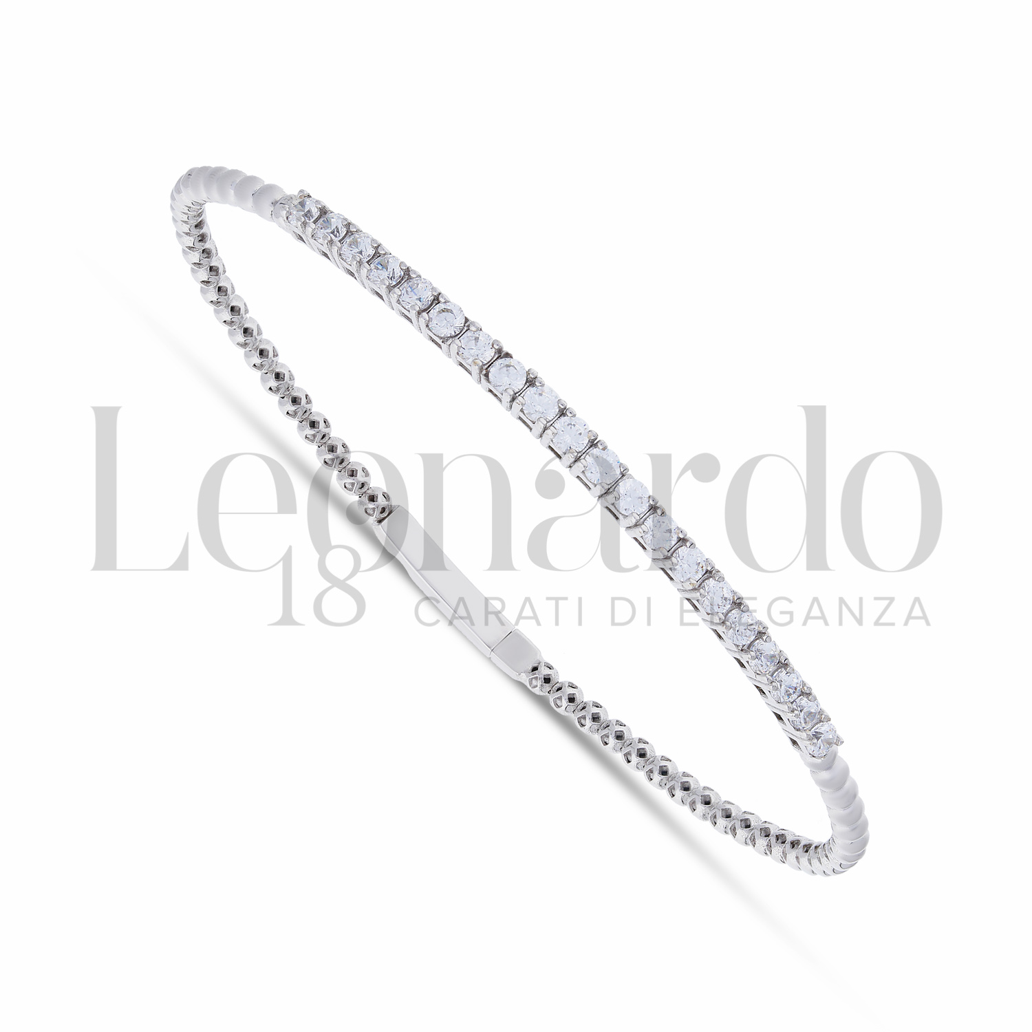 Mezzo Tennis, modello Rigido, con sfere lucide da 2,20 mm e Zirconi Bianchi da 2,00 mm, chiusura a cassetta in Oro Bianco.