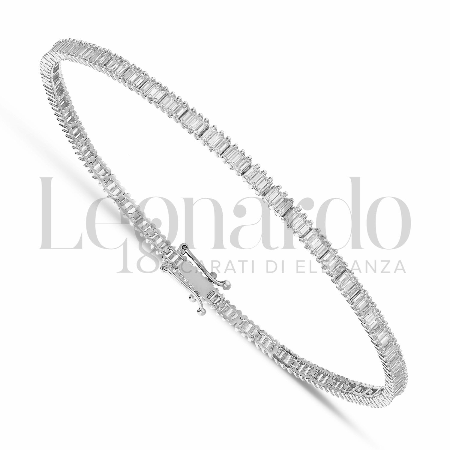 Bracciale tennis microfuso, con zirconi bianchi, taglio baguette, da 1 mm in Oro Bianco.