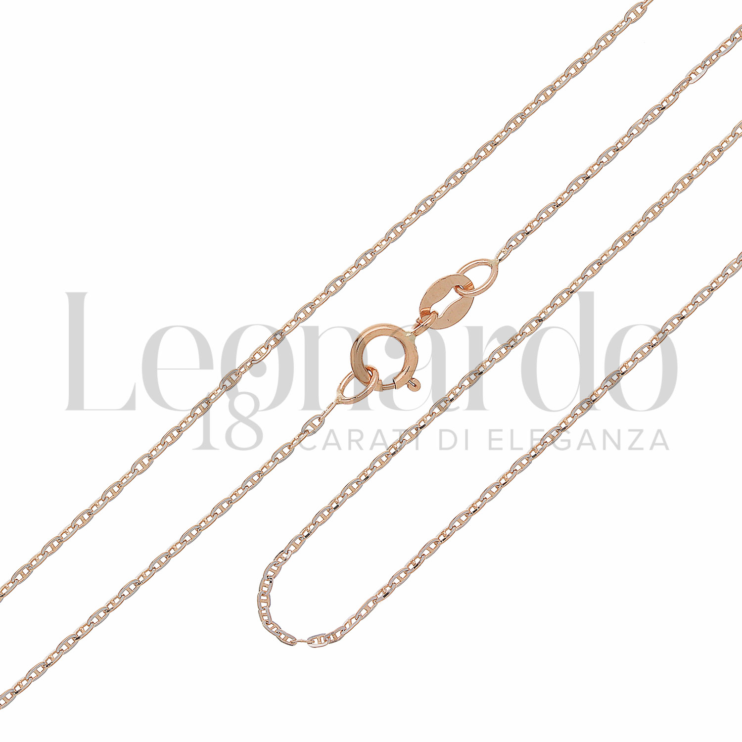 Catenina Forzatina con traversino, diamantata, filo 30, a 50 cm, in Oro Rosa e Oro Bianco.