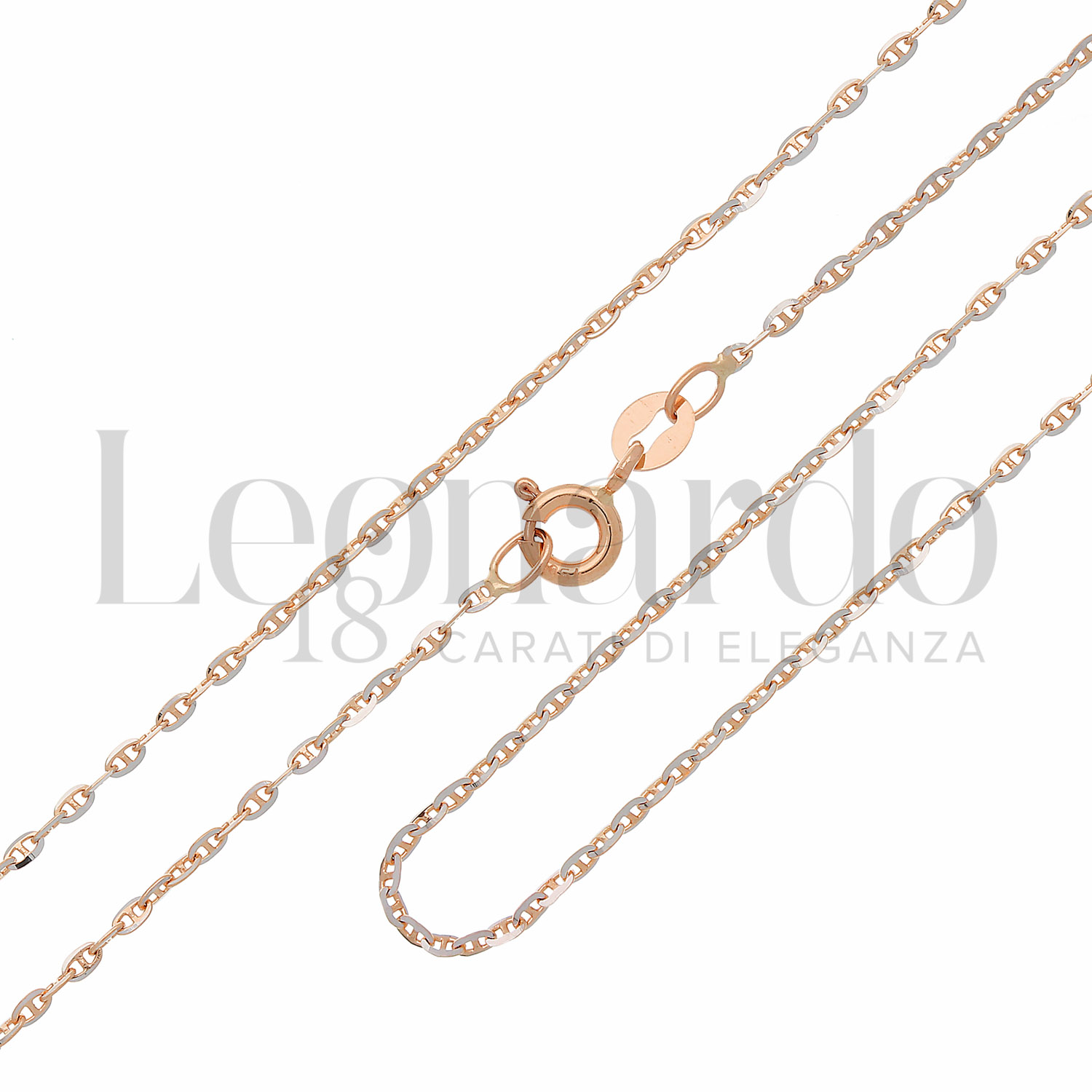 Catenina Forzatina con traversino, diamantata, filo 30, a 45 cm, in Oro Rosa e Oro Bianco.