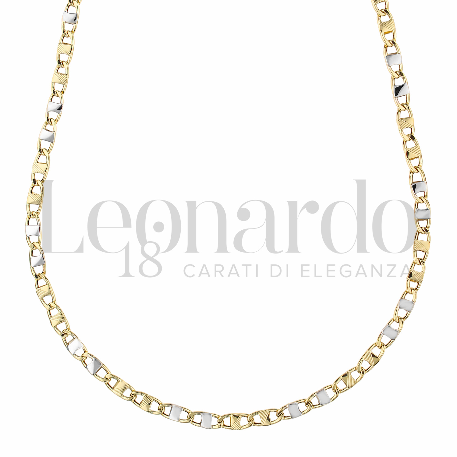 Collana a catena piatta, modello leggera, a 50 cm in Oro Giallo e Oro Bianco.