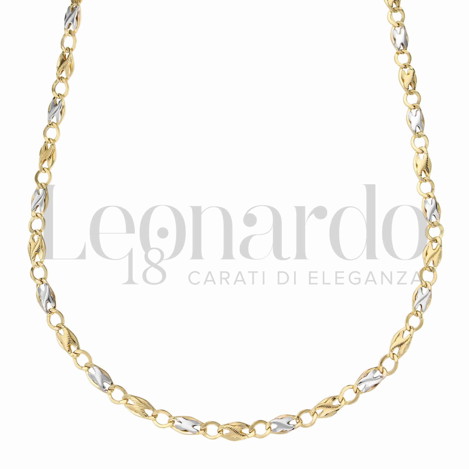 Collana a catena piatta da uomo, modello micro, finitura lucida e rigata, a 50 cm in Oro Giallo e Oro Bianco