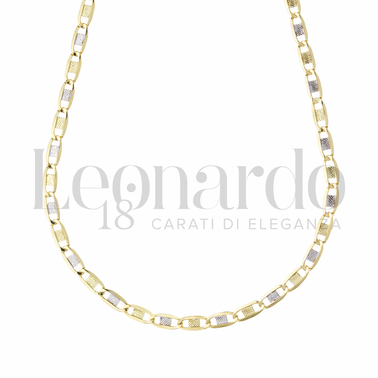 Collana da Uomo piatta, maglia Valentino, in oro Giallo e Bianco, a 60 cm.