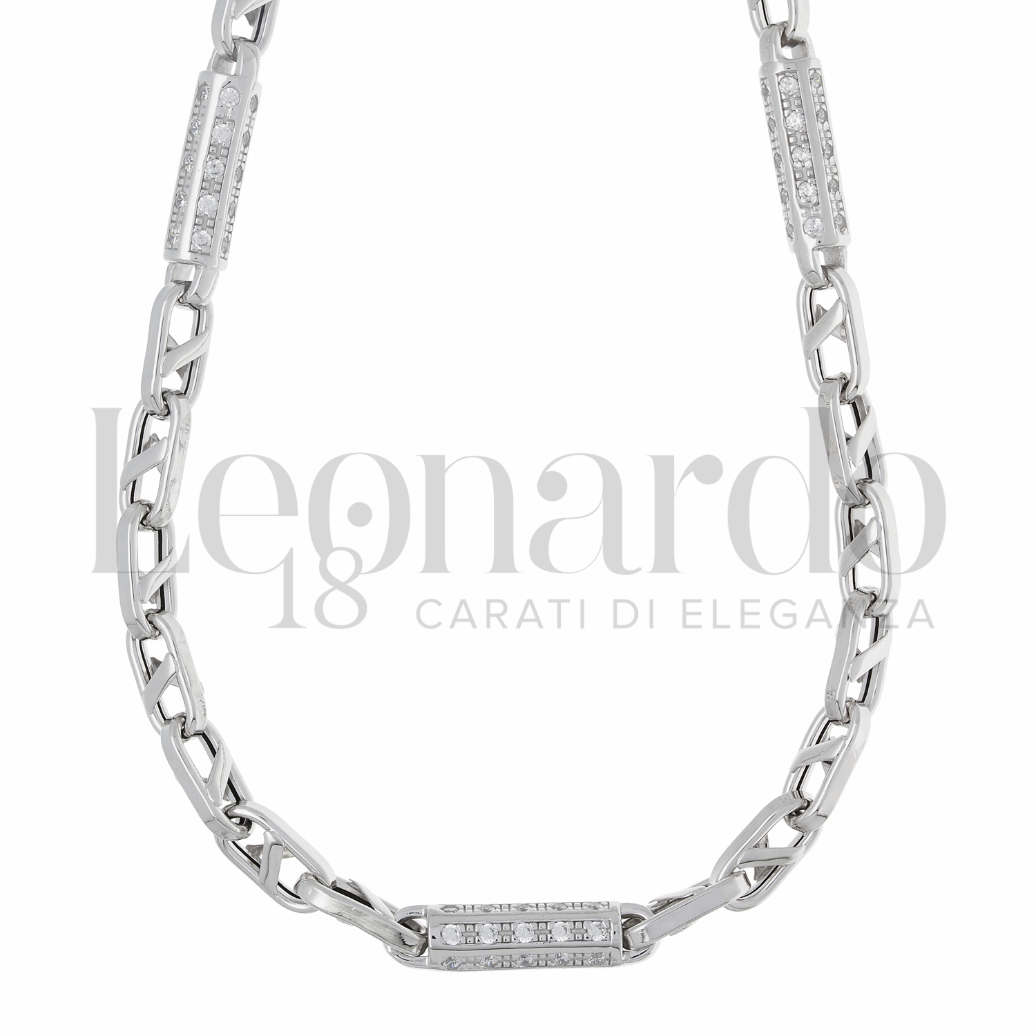 Collana Catena Vuota Piatta da Uomo, traversino diamantato, filo 80 a 50 cm in Oro Bianco