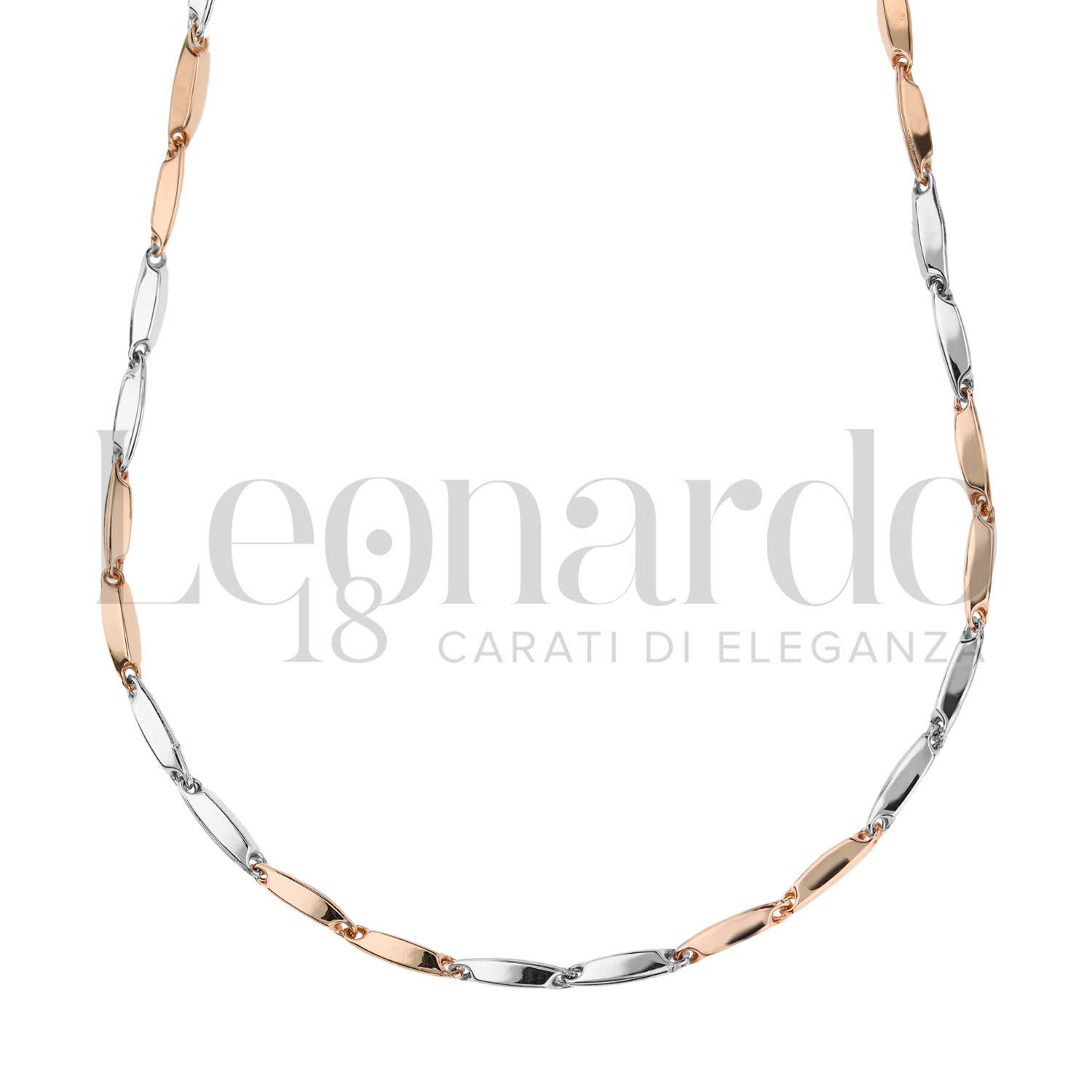 Collana a Catena Tubolare, a 50 cm, in Oro Giallo e Oro Bianco