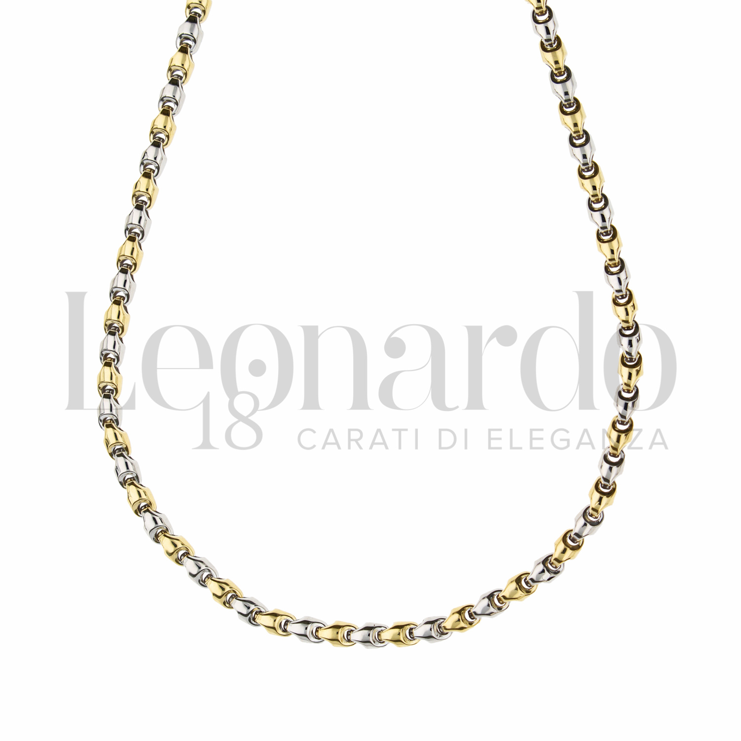 Catena tubolare da uomo in oro giallo e oro bianco.