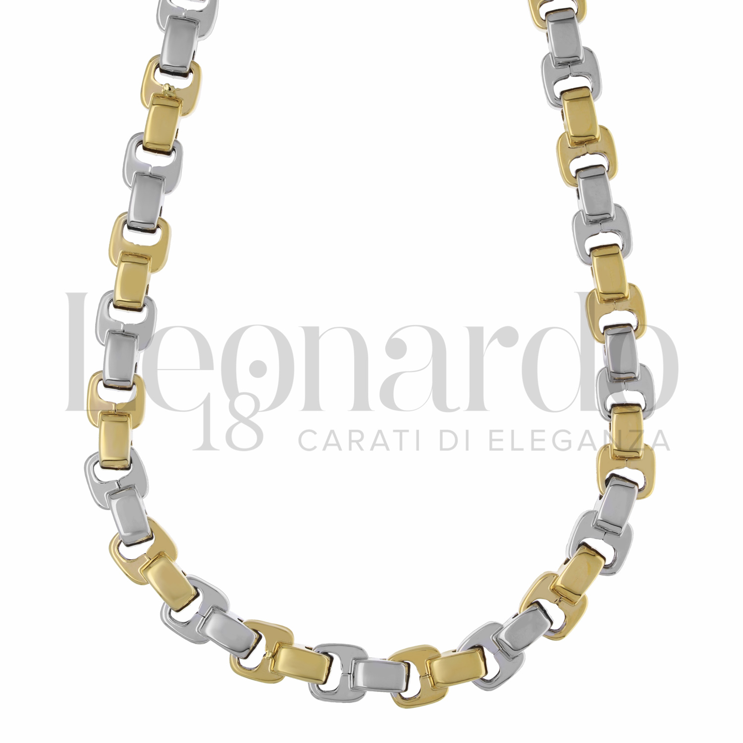 Collana da Uomo tubolare, a 50 cm in Oro Giallo E Oro Bianco.