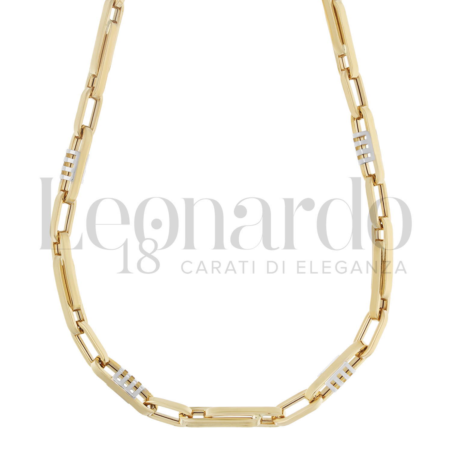 Collana tubolare da Uomo, con Greca, a 50 cm, in Oro Giallo e Oro Bianco