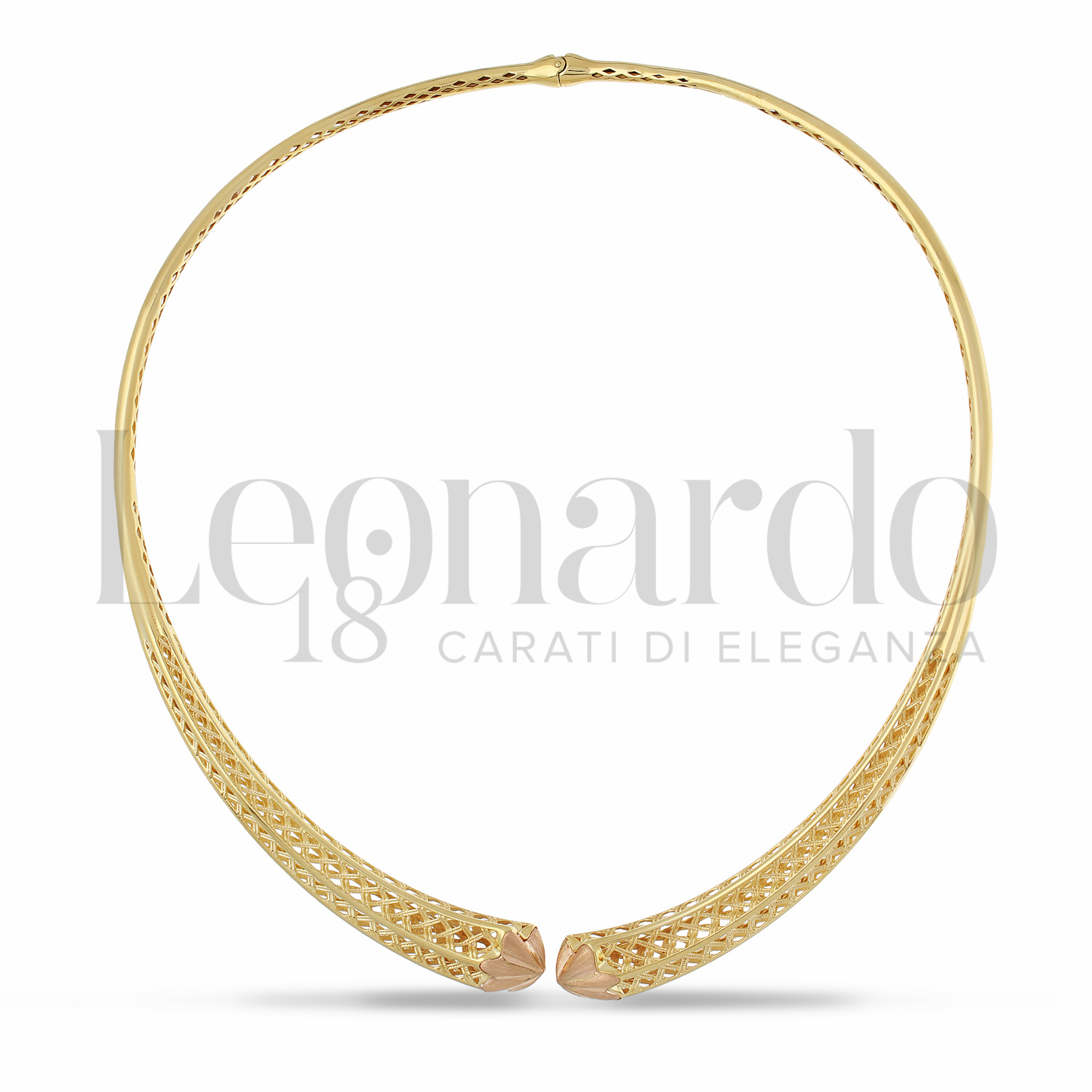 Chocker Rigido da Donna, realizzato in elettrofusione, finitura lucida e satinata, 2° misura in Oro Giallo e Oro Rosa.