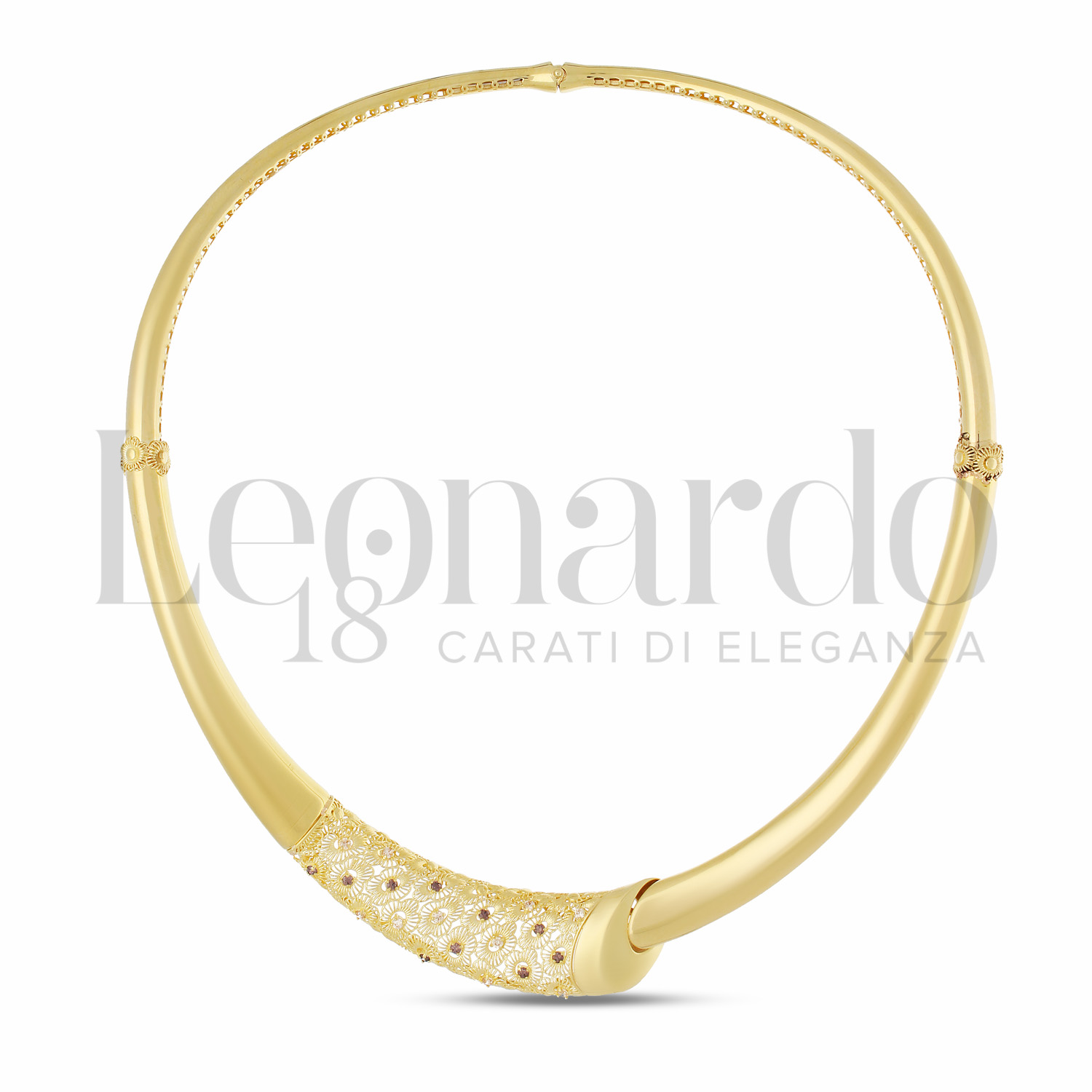 Chocker Rigido da Donna, realizzato in Elettroformatura, con Zirconi Bianchi e Zirconi Brown, finitura lucida e satinata, in Oro Giallo.
