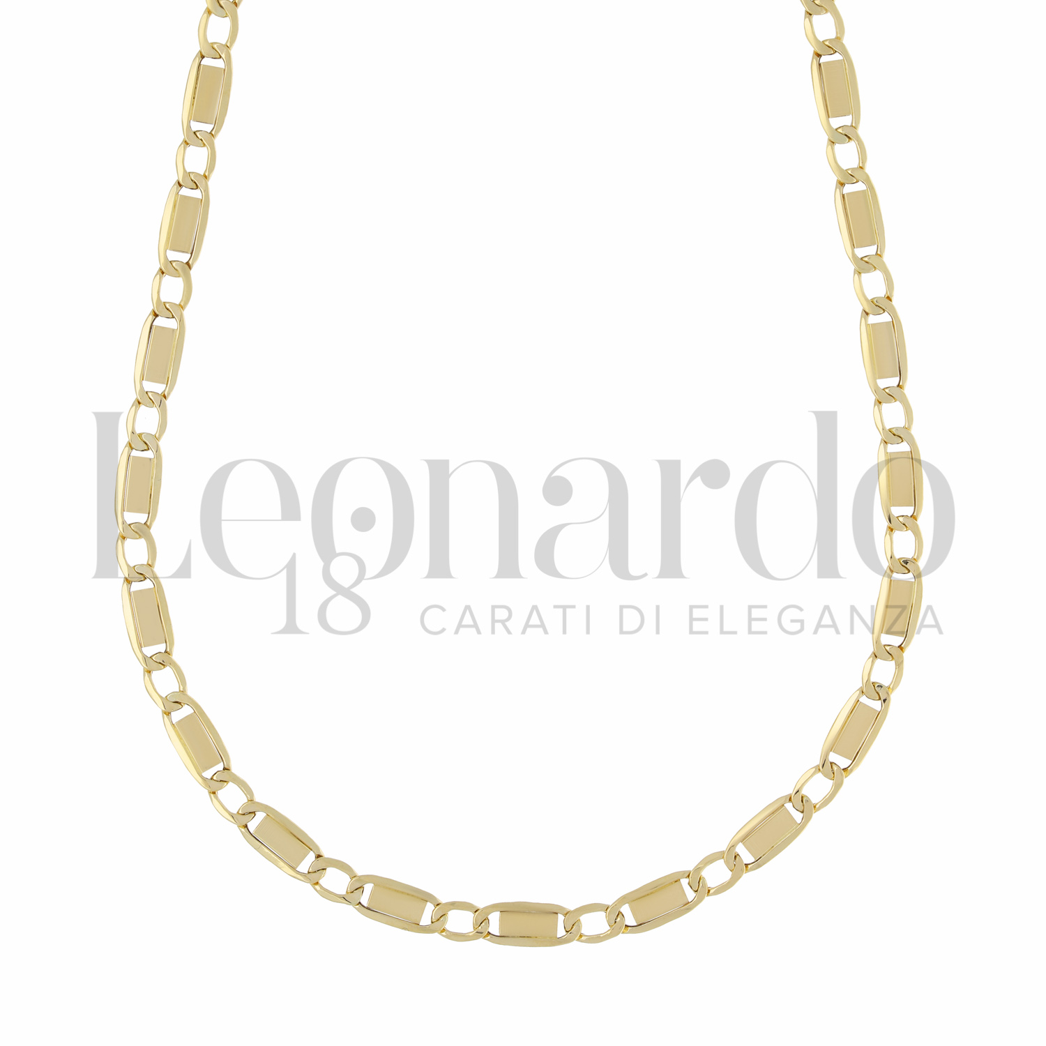 Collana Catena Vuota Piatta da Uomo, 3+1, Filo 80, a 50 cm in Oro Giallo