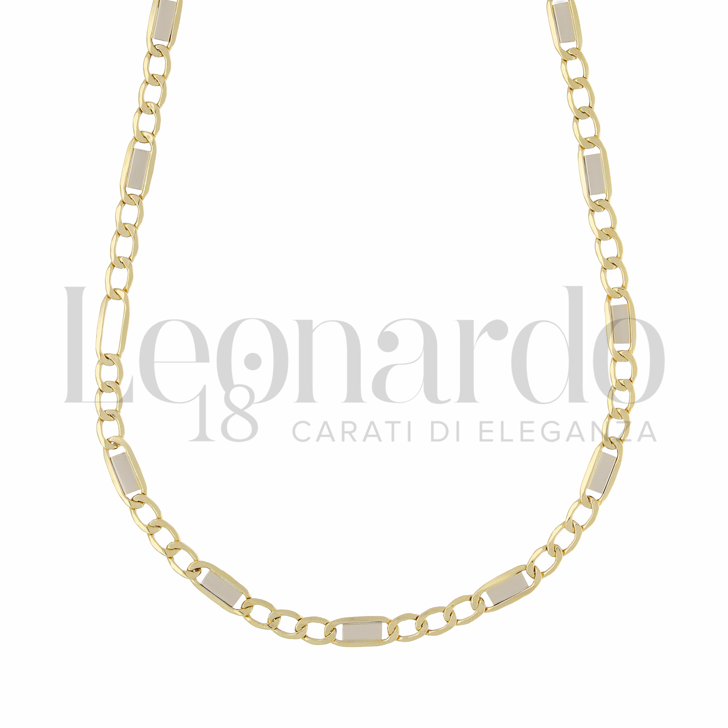 Collana Catena Vuota Piatta da Uomo, 3+1, Filo 80, a 50 cm in Oro Giallo e Oro Bianco.