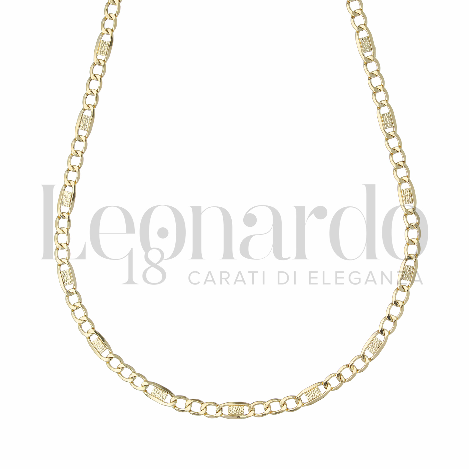 Collana a catena piatta da uomo, maglia Figaro puntinata, filo 80 a 50 cm, in Oro Giallo.