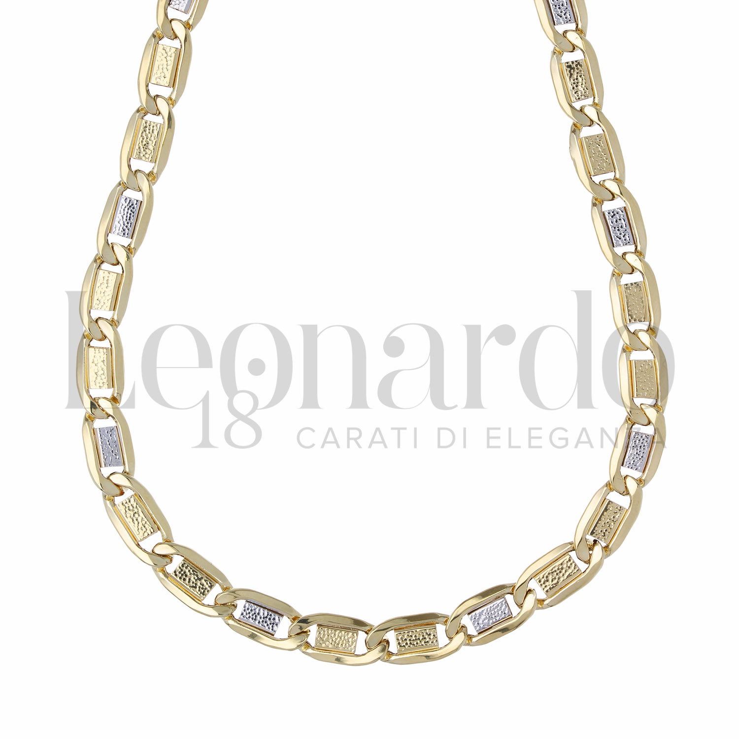 Collana a catena piatta da uomo, maglia Valentino puntinata, filo 120 a 60 cm, in Oro Giallo e Oro Bianco.
