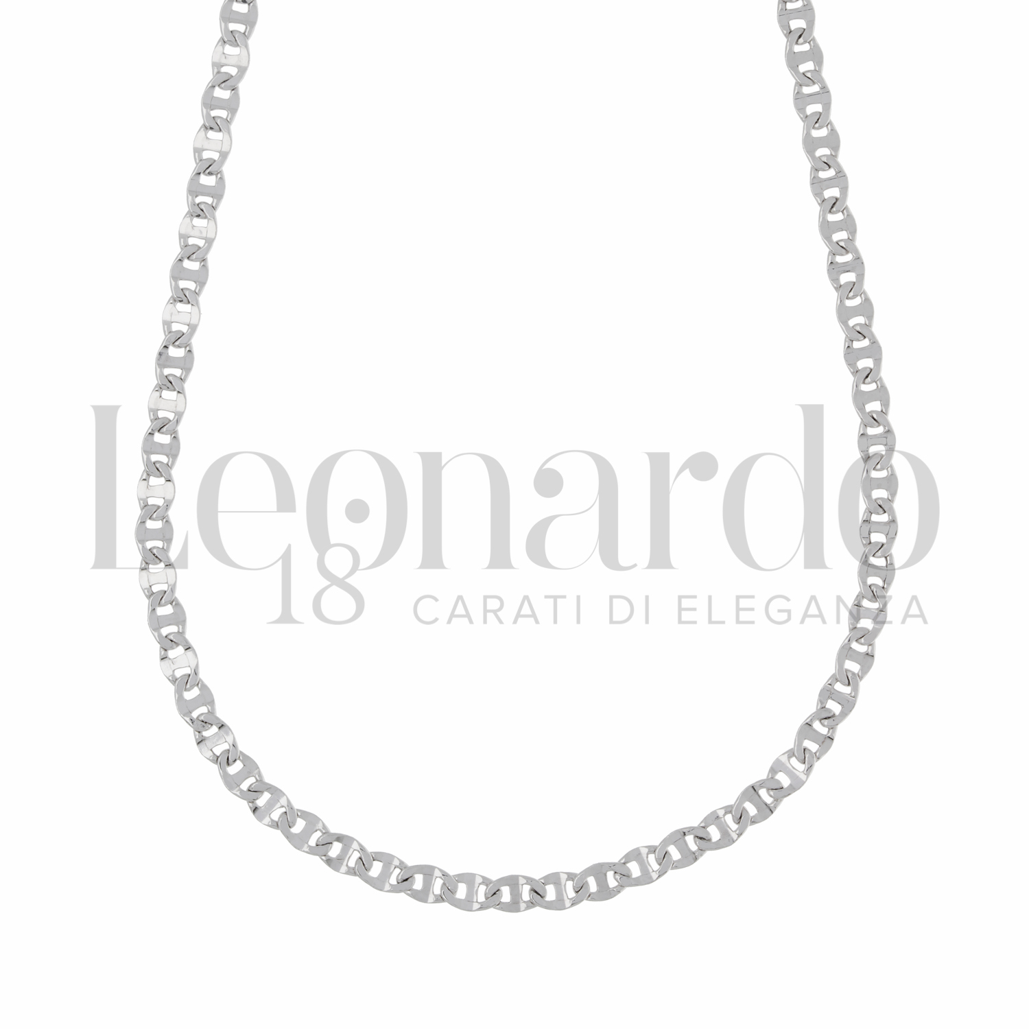 Collana Catena Vuota Piatta da Uomo, traversino diamantato, filo 80 a 50 cm in Oro Bianco.