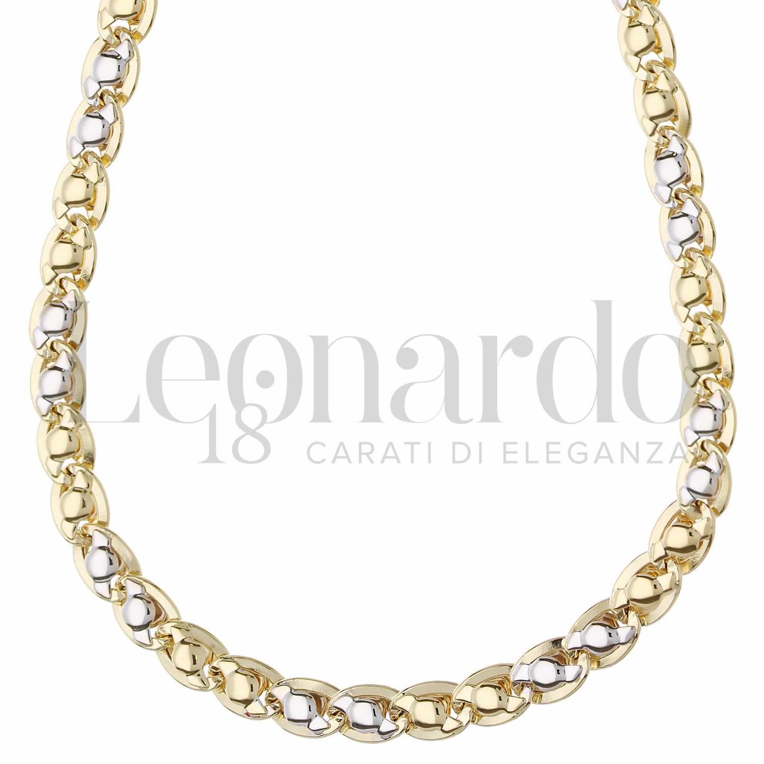 Collana a catena piatta, Collezione Big, a 50 cm in Oro Giallo e Oro Bianco