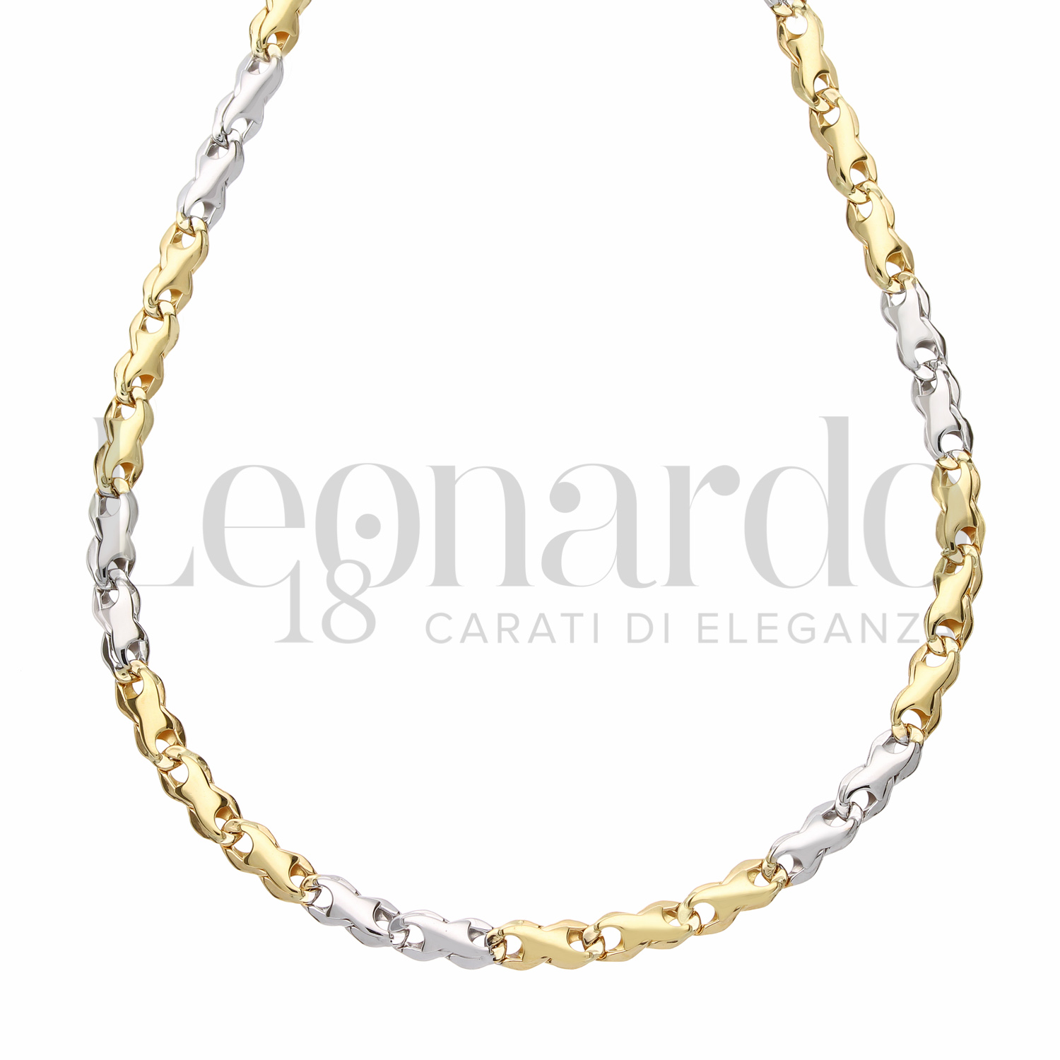 Collana a Catena Piatta da Uomo, a 60 cm, finitura lucida, in Oro Giallo e Oro Bianco.