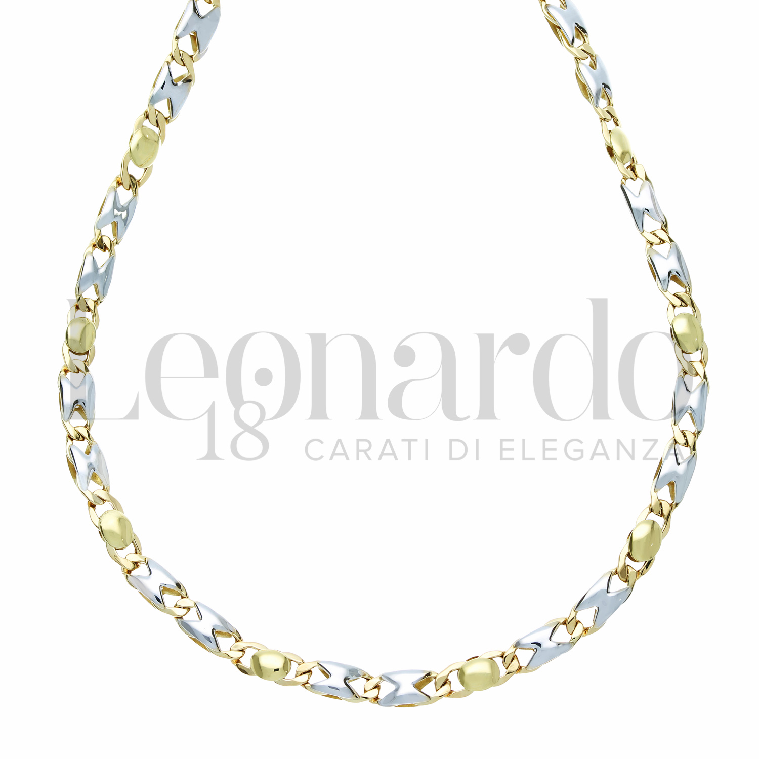 Collana a Catena Piatta da Uomo, a 60 cm, finitura lucida, in Oro Giallo e Oro Bianco.