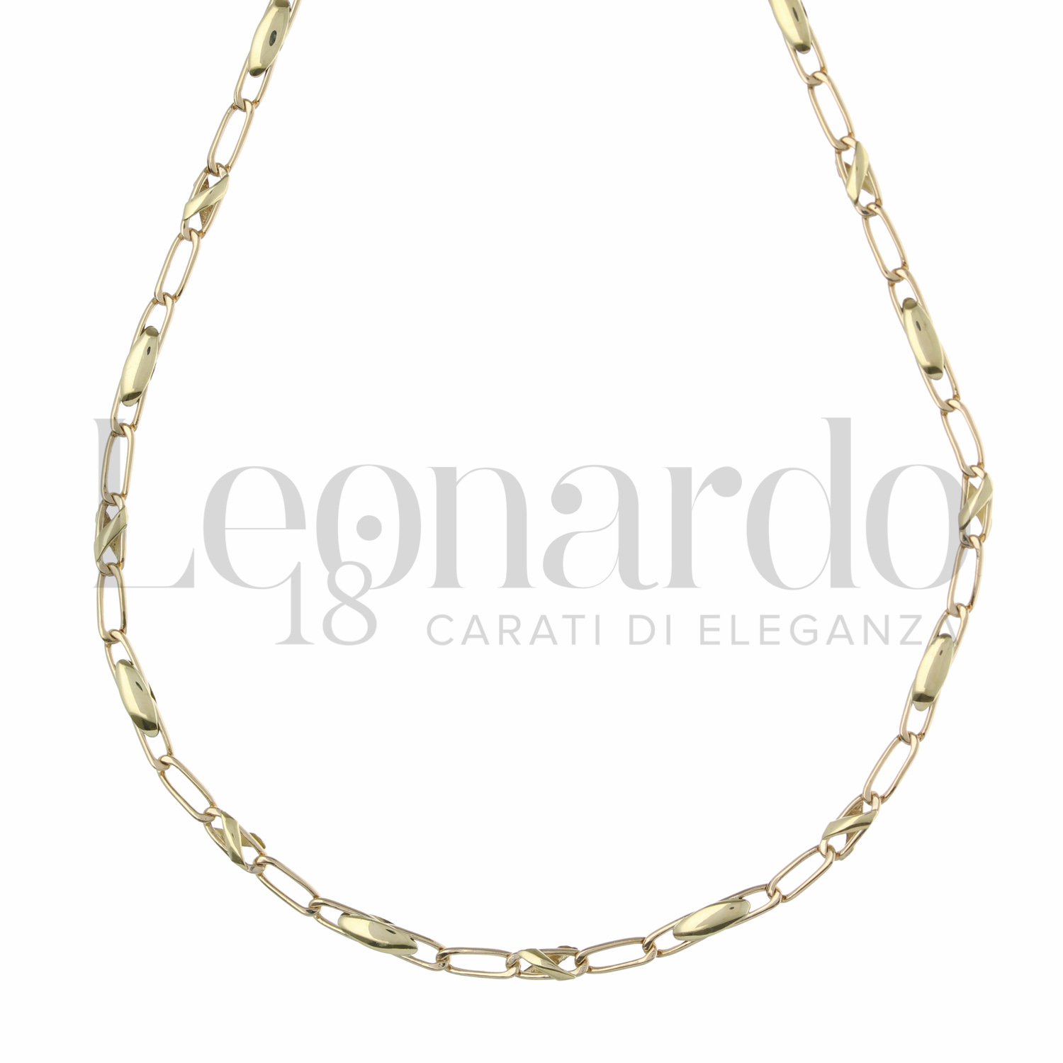 Collana Catena Vuota Piatta da Uomo, traversino diamantato, filo 120 a 50 cm in Oro Giallo