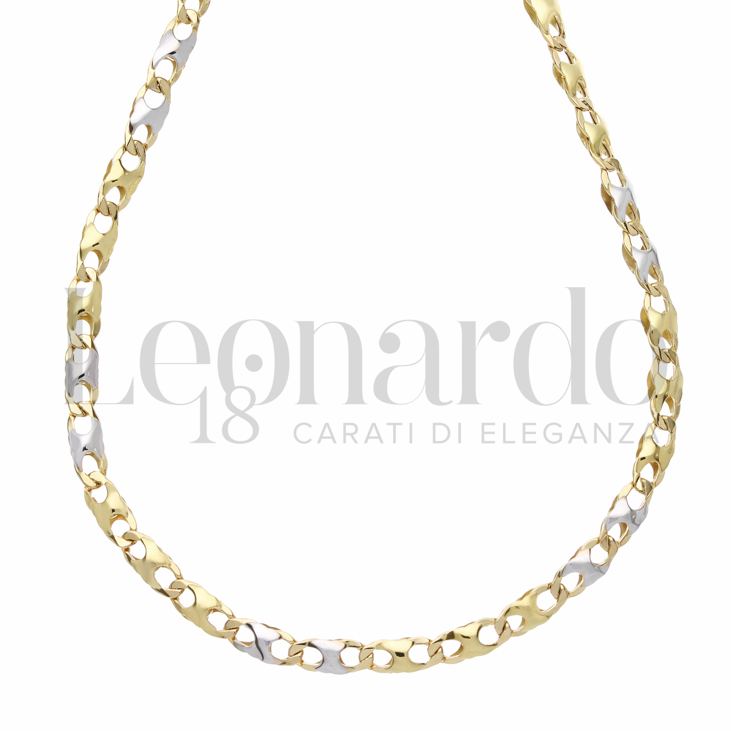 Collana a Catena Piatta da Uomo, a 60 cm, finitura lucida, in Oro Giallo e Oro Bianco.