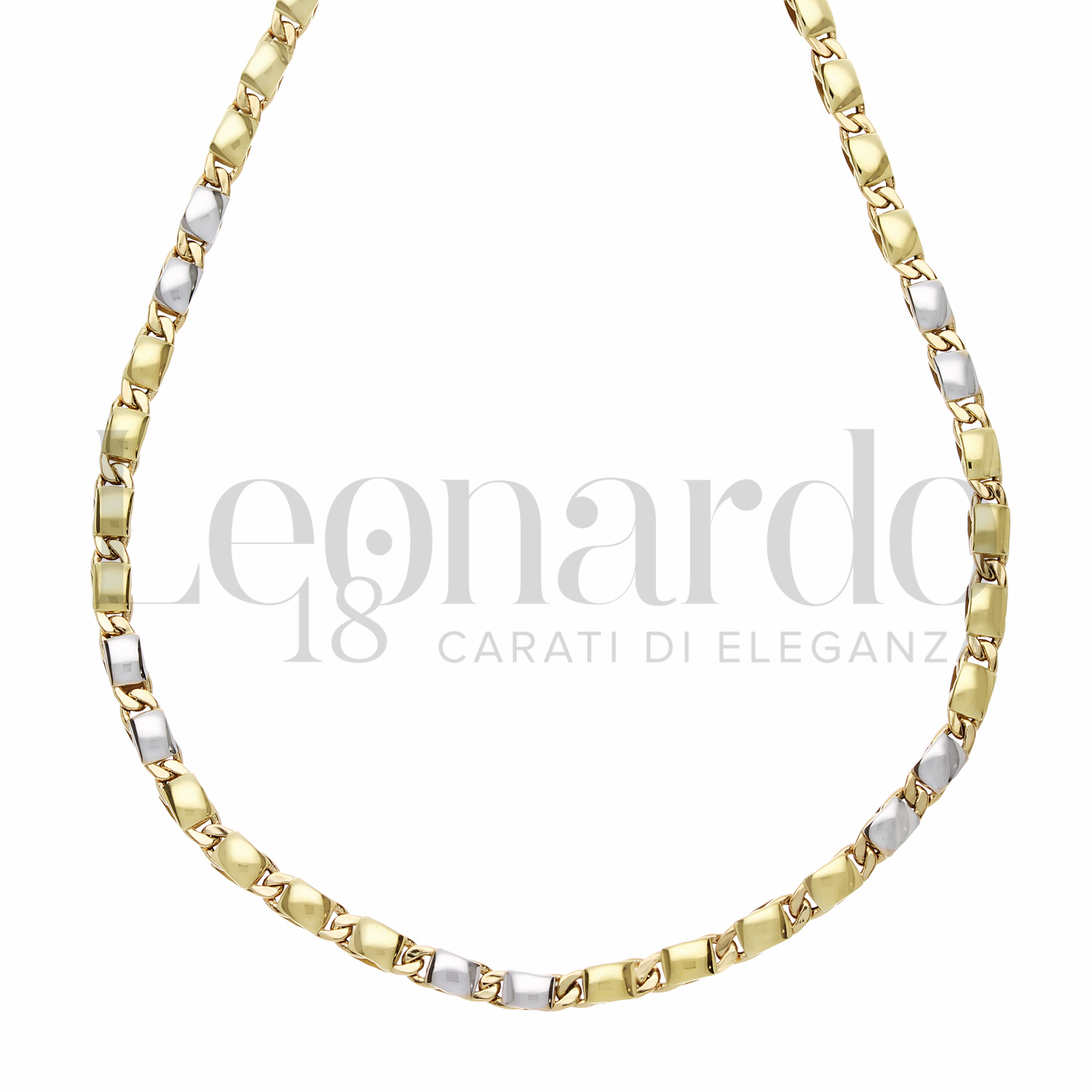 Collana a Catena Piatta da Uomo, a 60 cm, finitura lucida, in Oro Giallo e Oro Bianco.