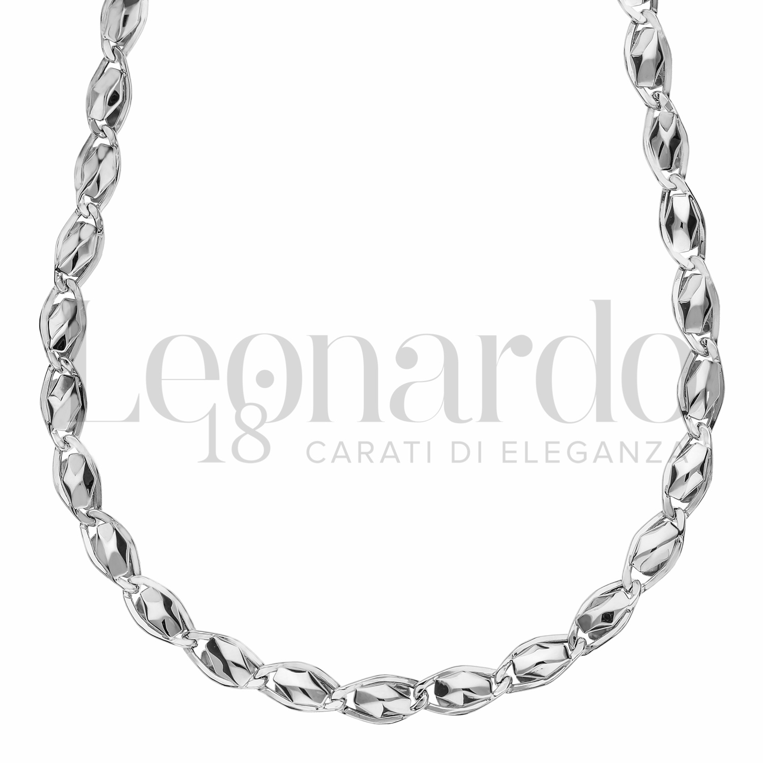 Collana da uomo a catena piatta, collezione media, finitura a 50 cm in Oro Bianco.