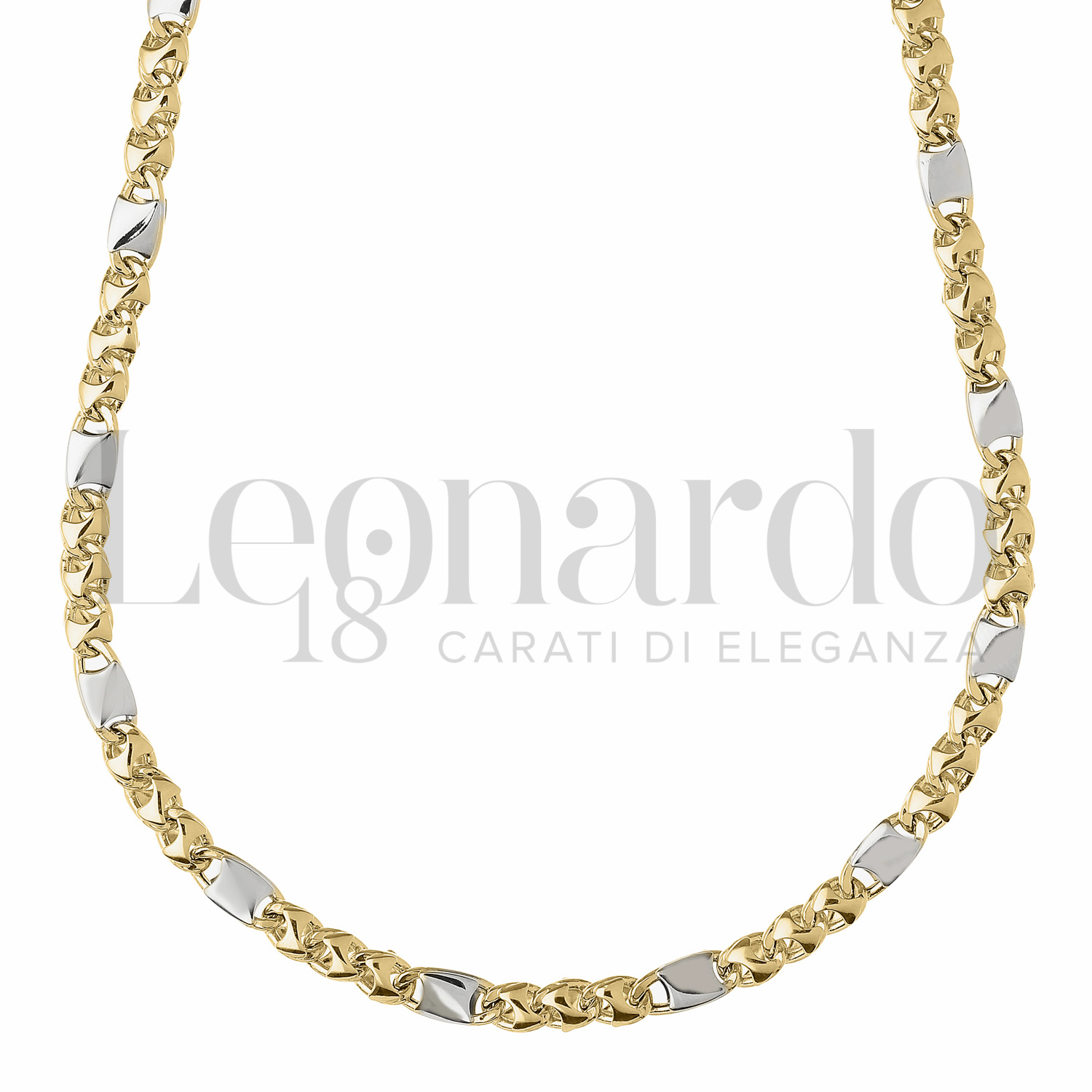 Collana a catena vuota piatta da Uomo, Collezione Media, a 50 cm, in Oro Giallo e Oro Bianco.