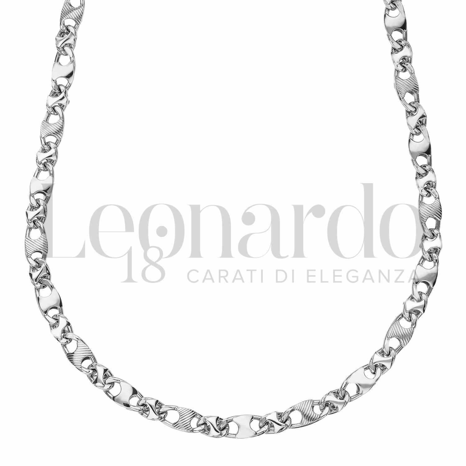 Collana Catena Vuota Piatta da Uomo, traversino diamantato, filo 60 a 60 cm in Oro Bianco