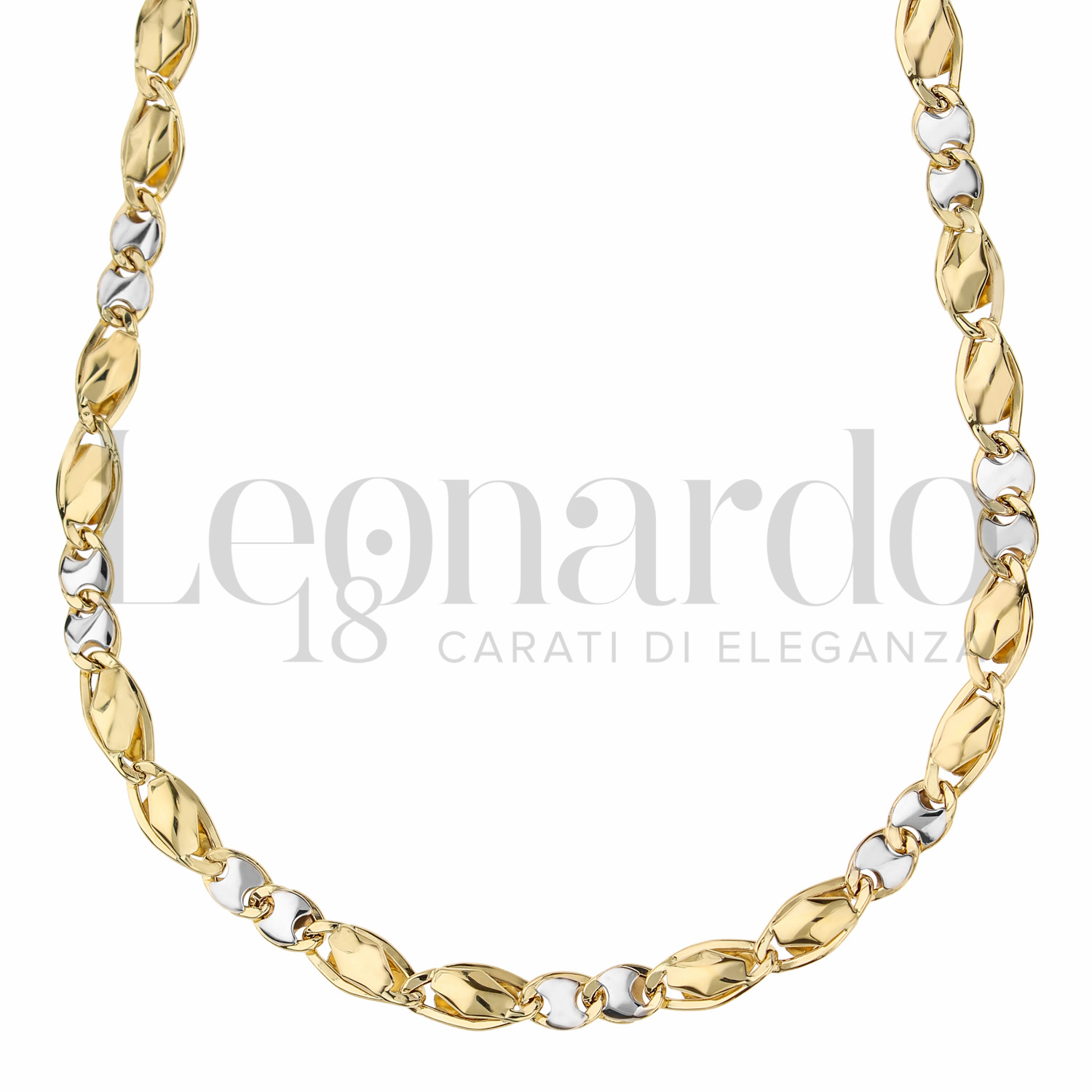 Collana a catena piatta, Collezione media, a 50 cm in Oro Giallo e Oro Bianco.