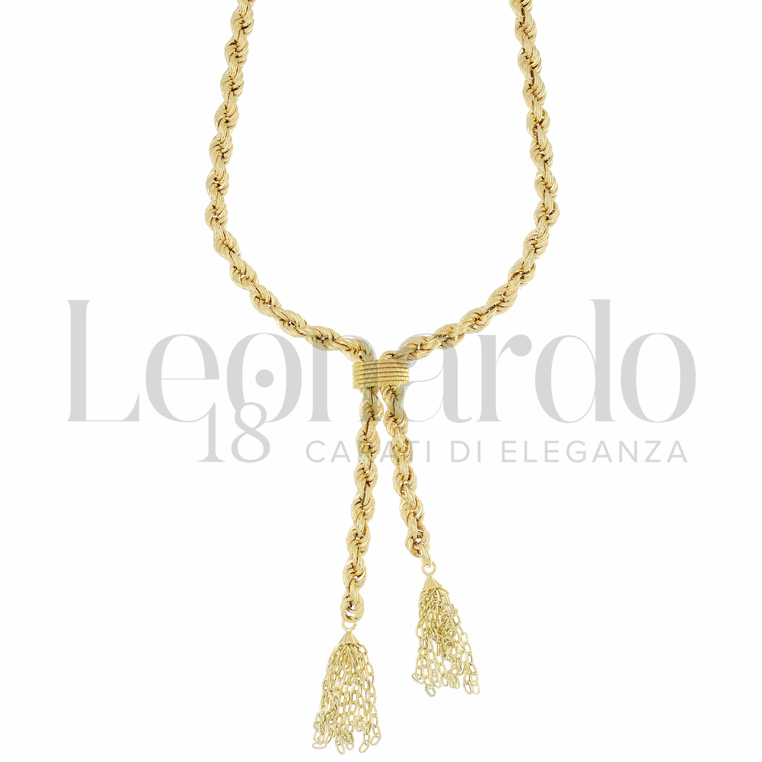 Collana Fune Vuota da Donna, con finto saliscendi, filo 120, a 60 cm, finitura lucida e satinata in Oro Giallo.