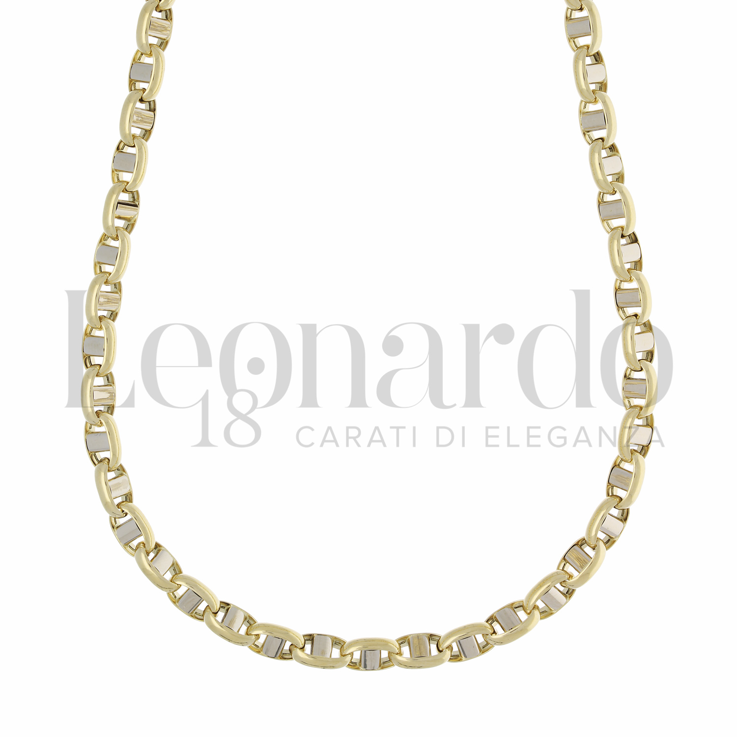 Collana da Uomo Maglia Marina, modello tubolare, filo 200 a 50 cm, in Oro Giallo e Oro Bianco.
