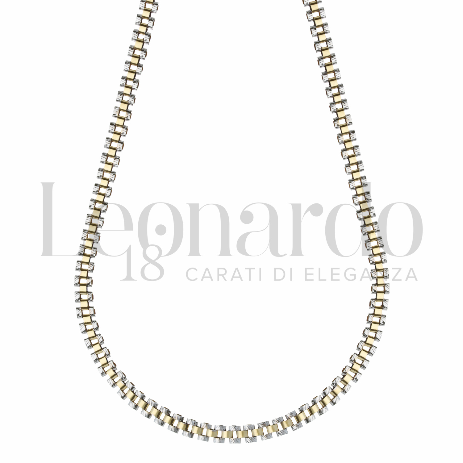 Collana da Uomo a piastre agganciate, modello cinturino, finitura lucida e satinata, a 55 cm, in Oro Giallo e Oro Bianco.
