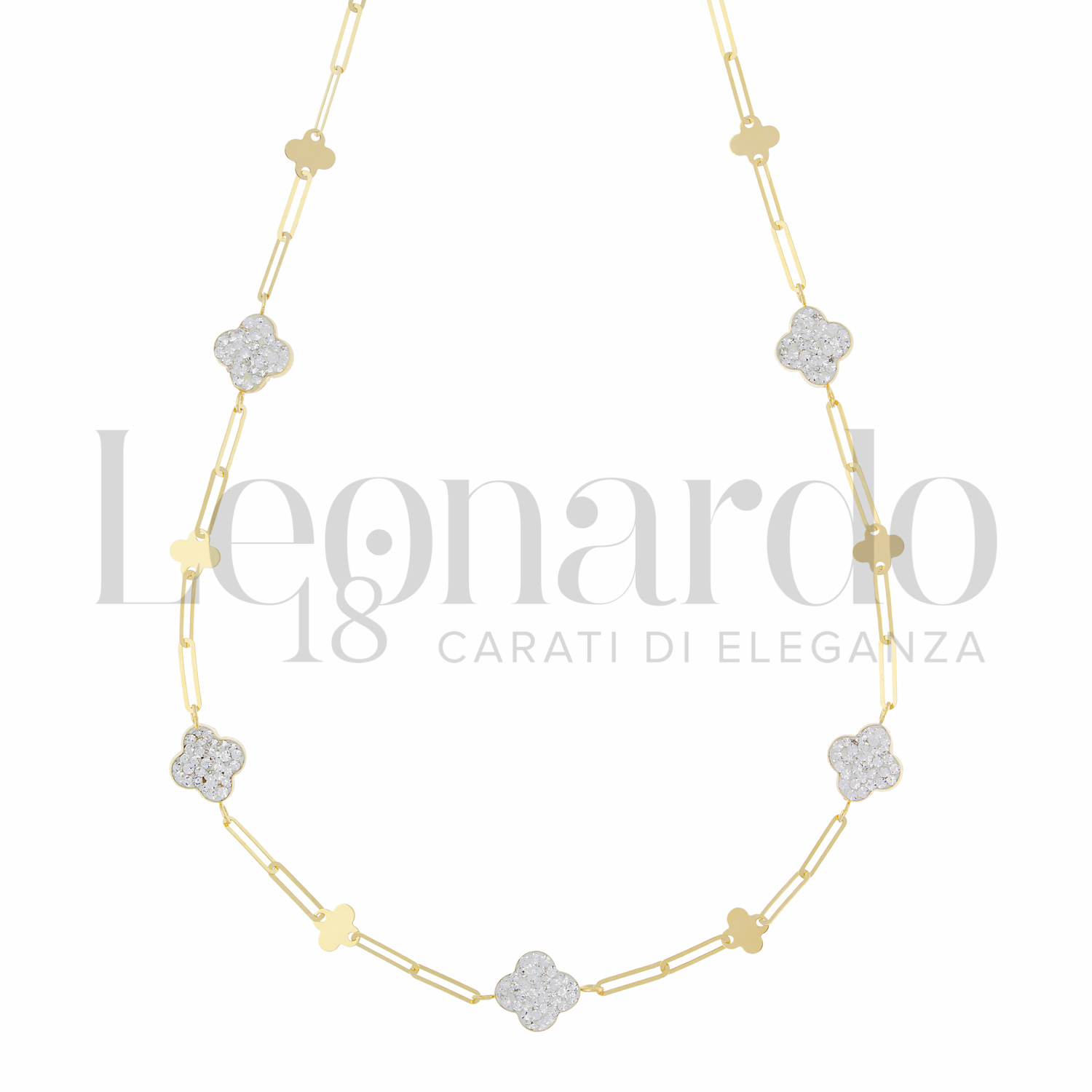 Collana Modello Maglia Gucci da Donna, con Quadrifogli in Resina e Zirconi e a Lastra, a 42 cm in Oro Giallo.
