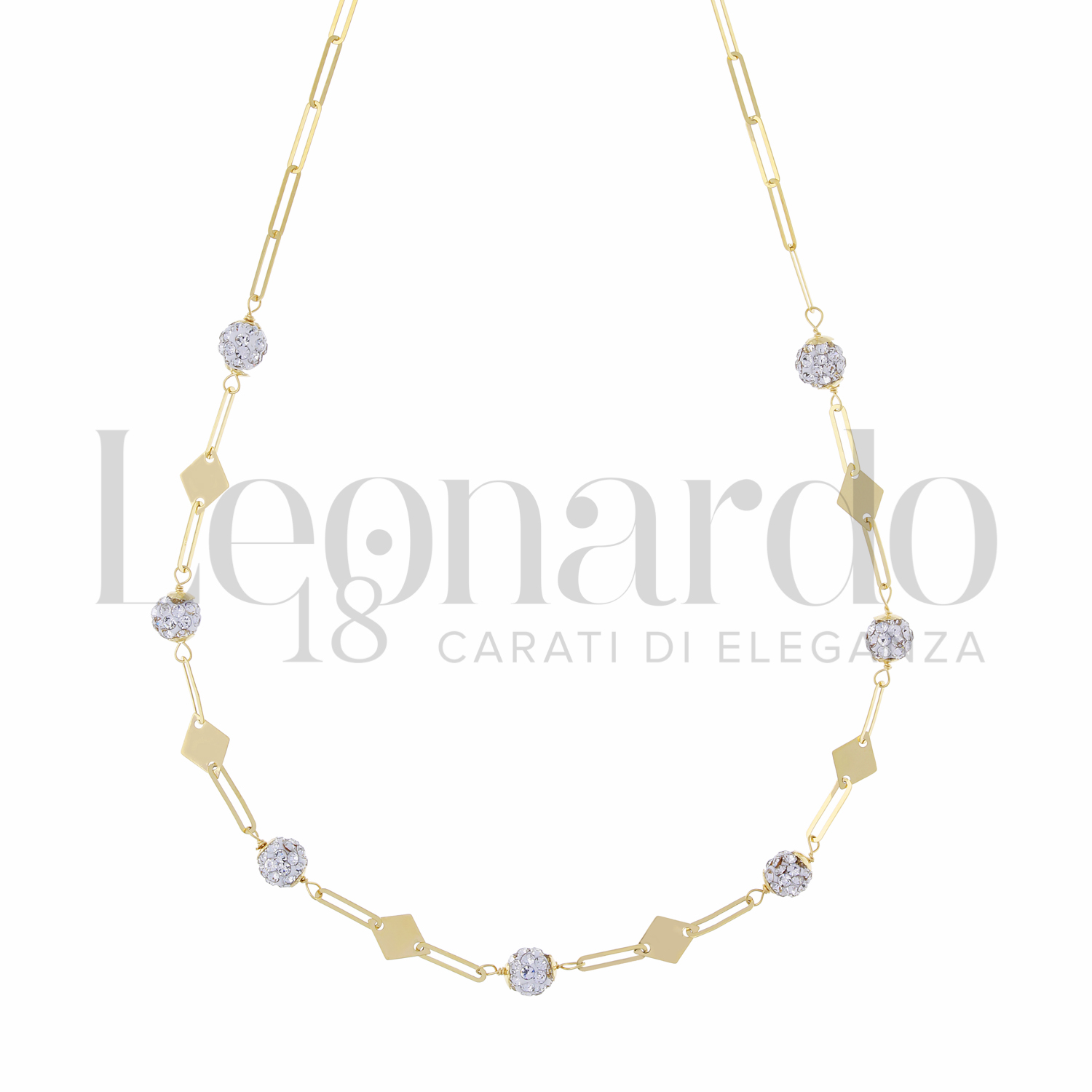 Collana Modello Maglia Gucci da Donna, con Sfere in resina e zirconi ed elementi a lastra a forma di Rombo, a 42 cm in Oro Giallo.
