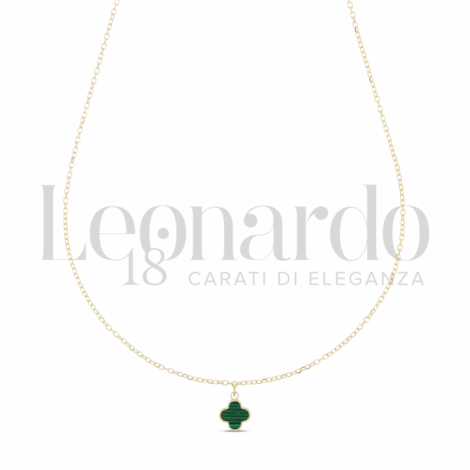 Girocollo da Donna, con Quadrifoglio in Malachite, 1 ° misura, 45 cm, in Oro Giallo.