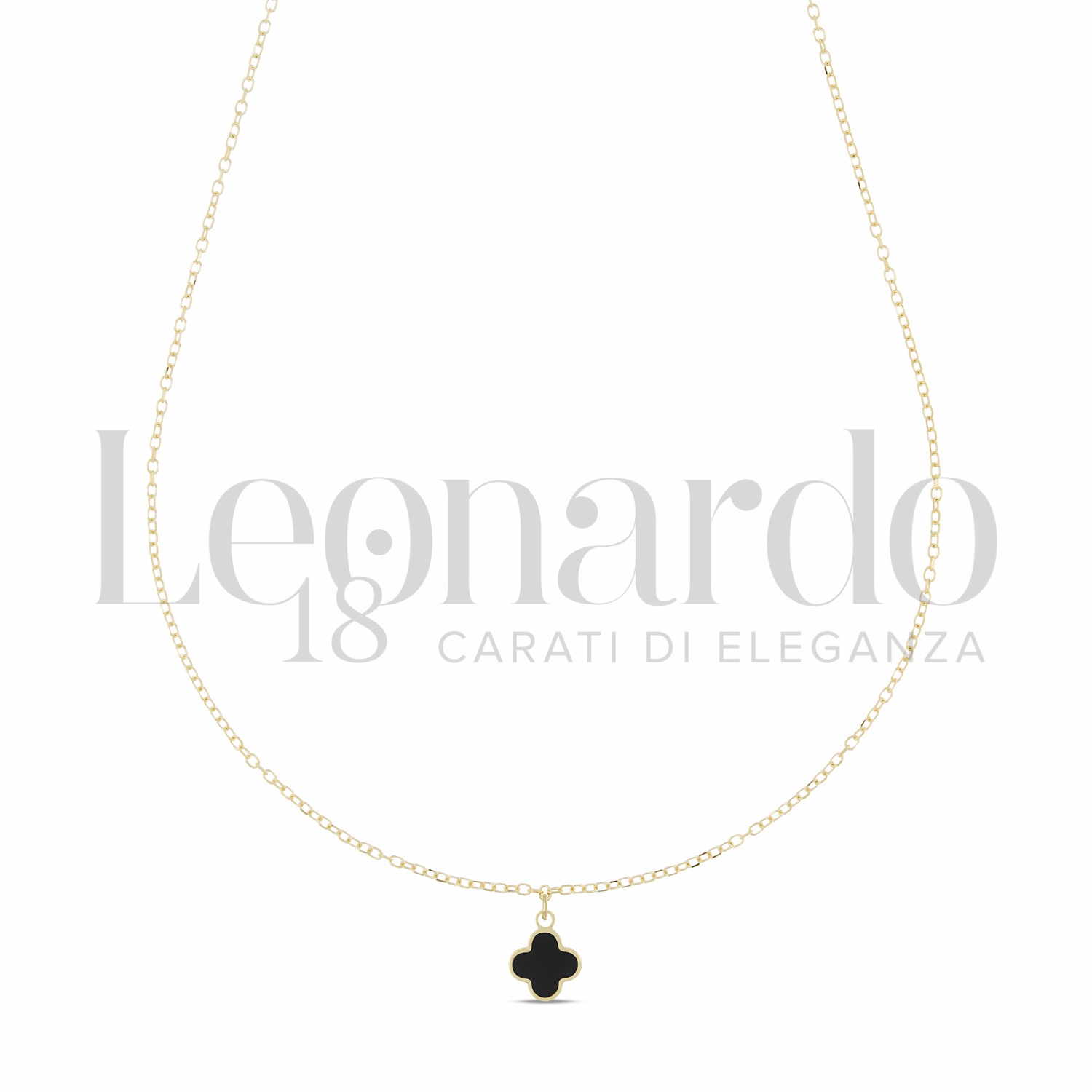 Girocollo da Donna, con Quadrifoglio in Onice, 1 ° misura, 42 cm con Riduzione a 40 cm, in Oro Giallo.