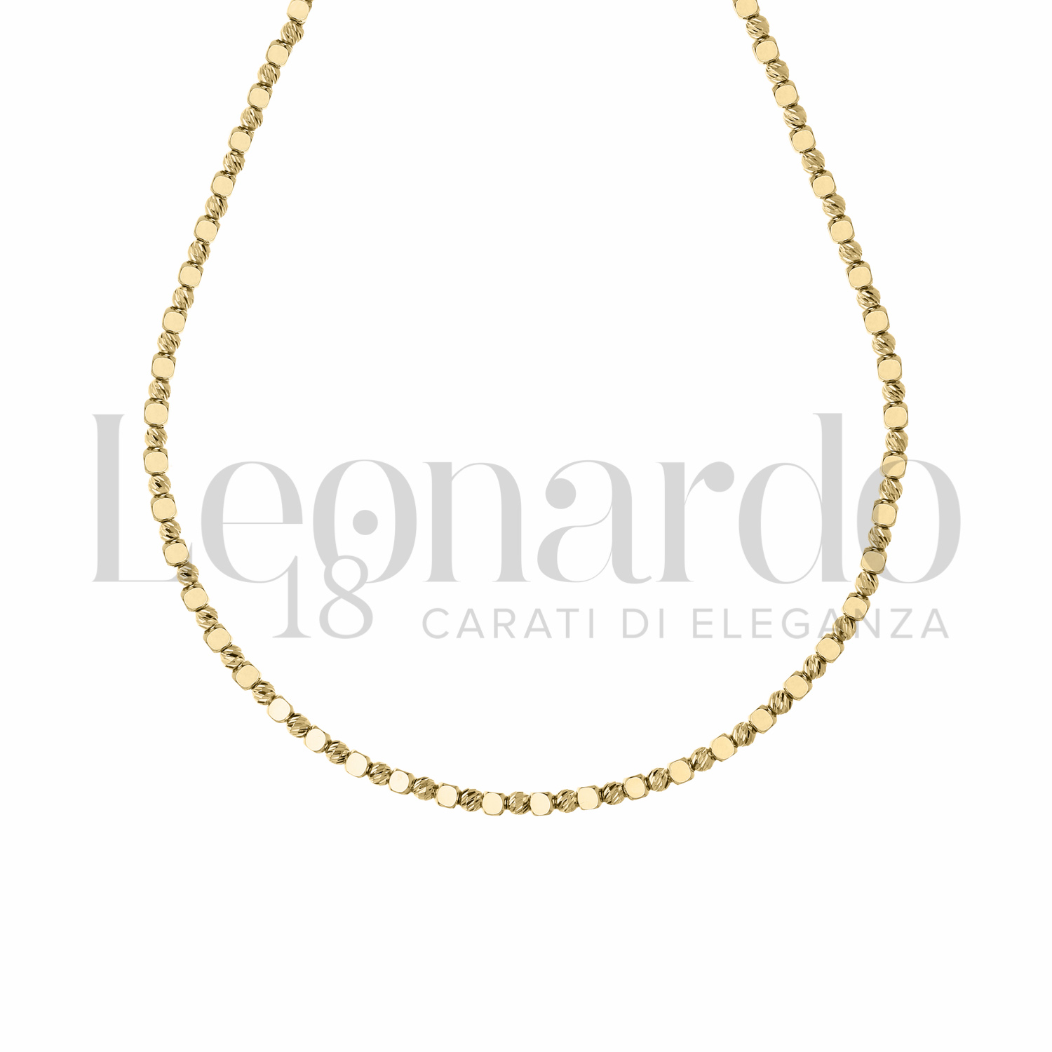 Collana con sfere e cubetti diamantati, a 50 cm, in Oro Giallo.