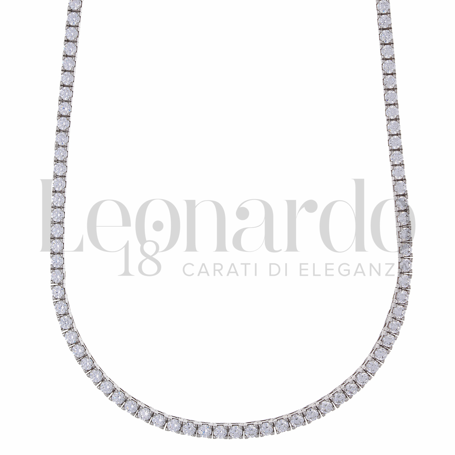 Collana Tennis, modello Microfuso, con Zirconi Bianchi da 2 mm, chiusura a cassetta, a 45 cm in Oro Bianco.