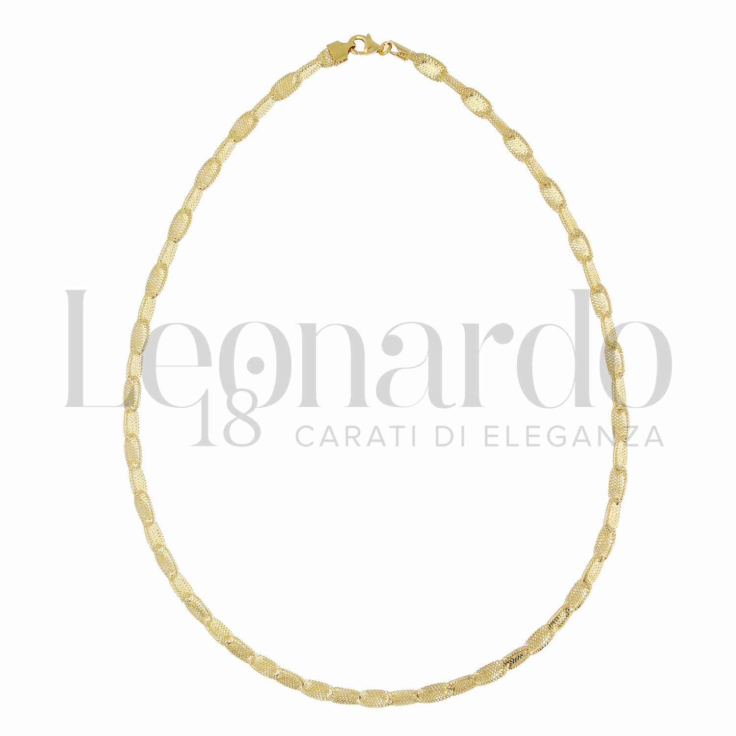 Girocollo fantasia a calza da donna, sepssore 5,00 mm, moschettone a pera, in Oro Giallo.