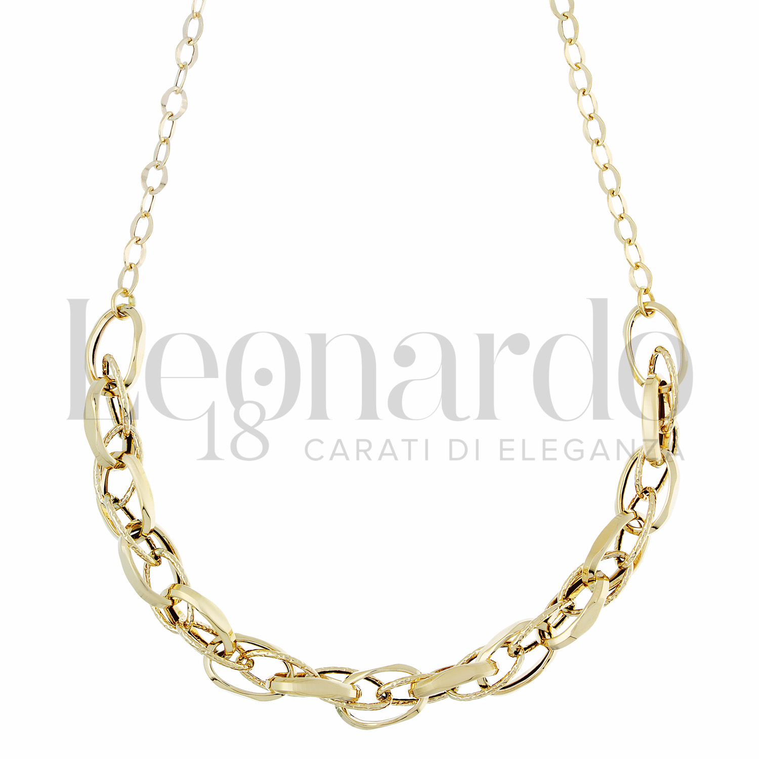 Girocollo a catena, modello maglia gucci, finitura lucida e martellata, a 50 cm in Oro Giallo