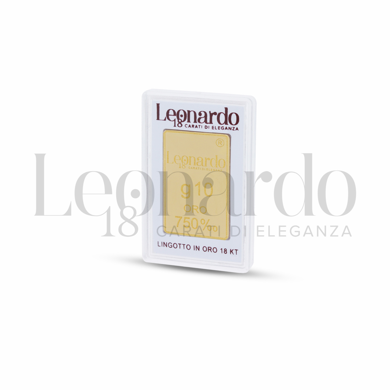 Lingotto da 10 gr, con stampo frontale, blisterato, finitura lucida in Oro Giallo.