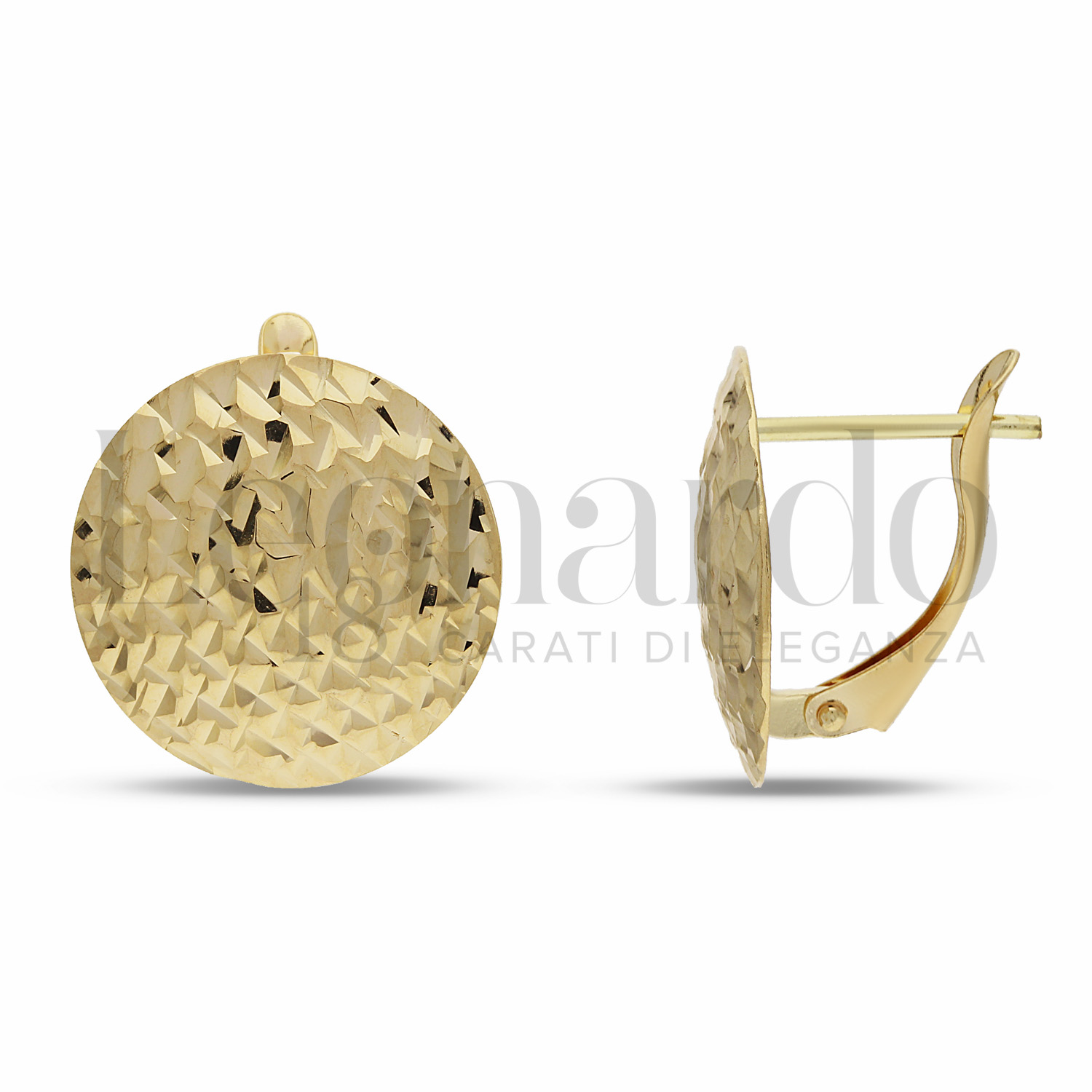 Orecchini Bottone da Donna, chiusura a monachella, finitura Diamantata, in Oro Giallo.