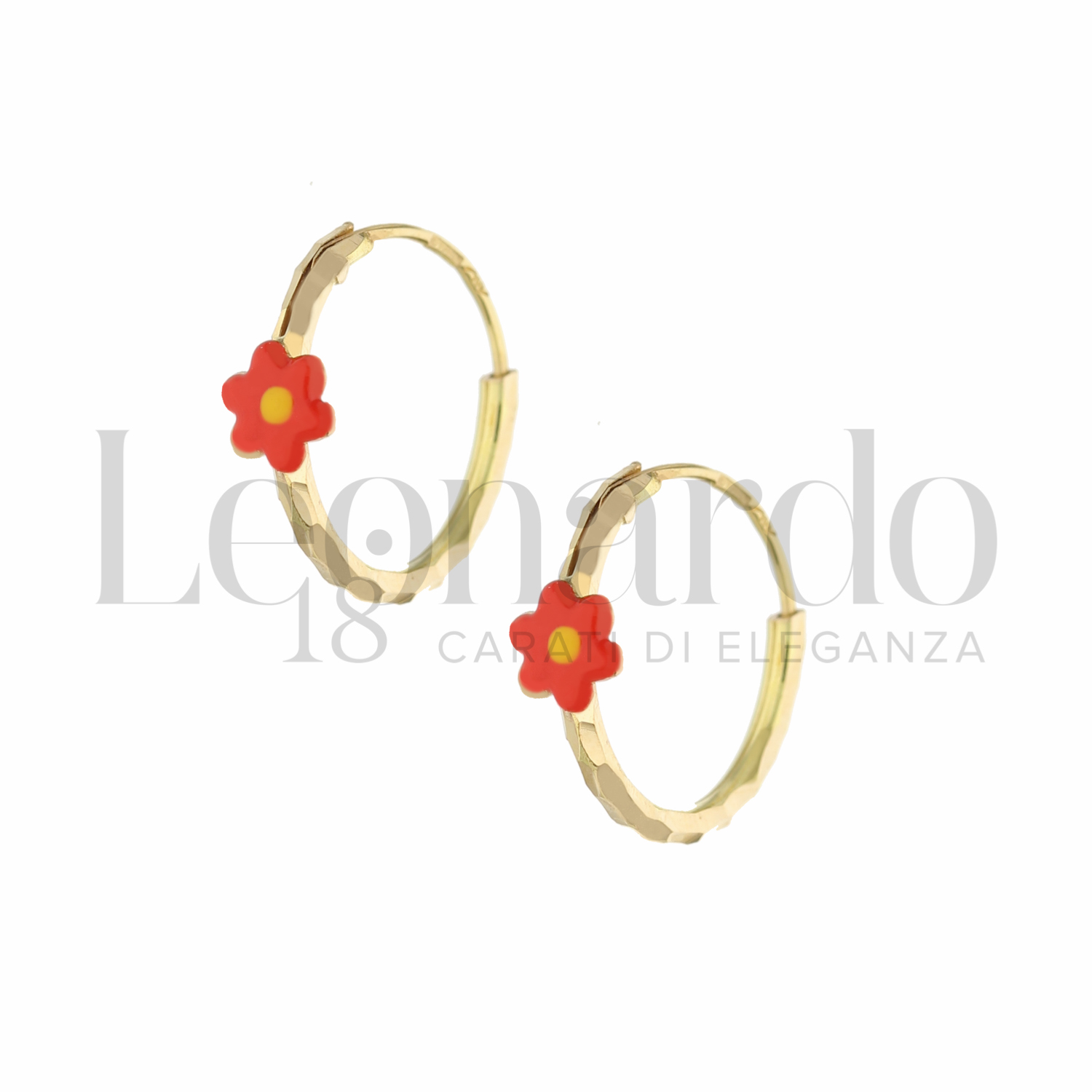 Orecchini Baby a cerchio con Fiore in Oro Giallo.