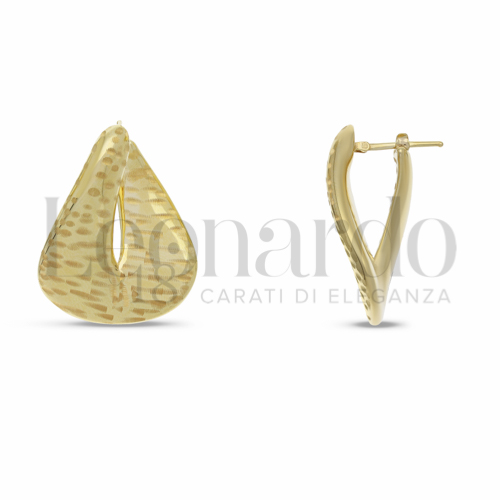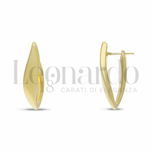 Orecchini a cerchio da Donna, diametro interno da 8 mm, canna da 2,00 mm, con una fila centrale di zirconi bianchi, finitura lucida, chiusura scattino, in Oro Giallo.