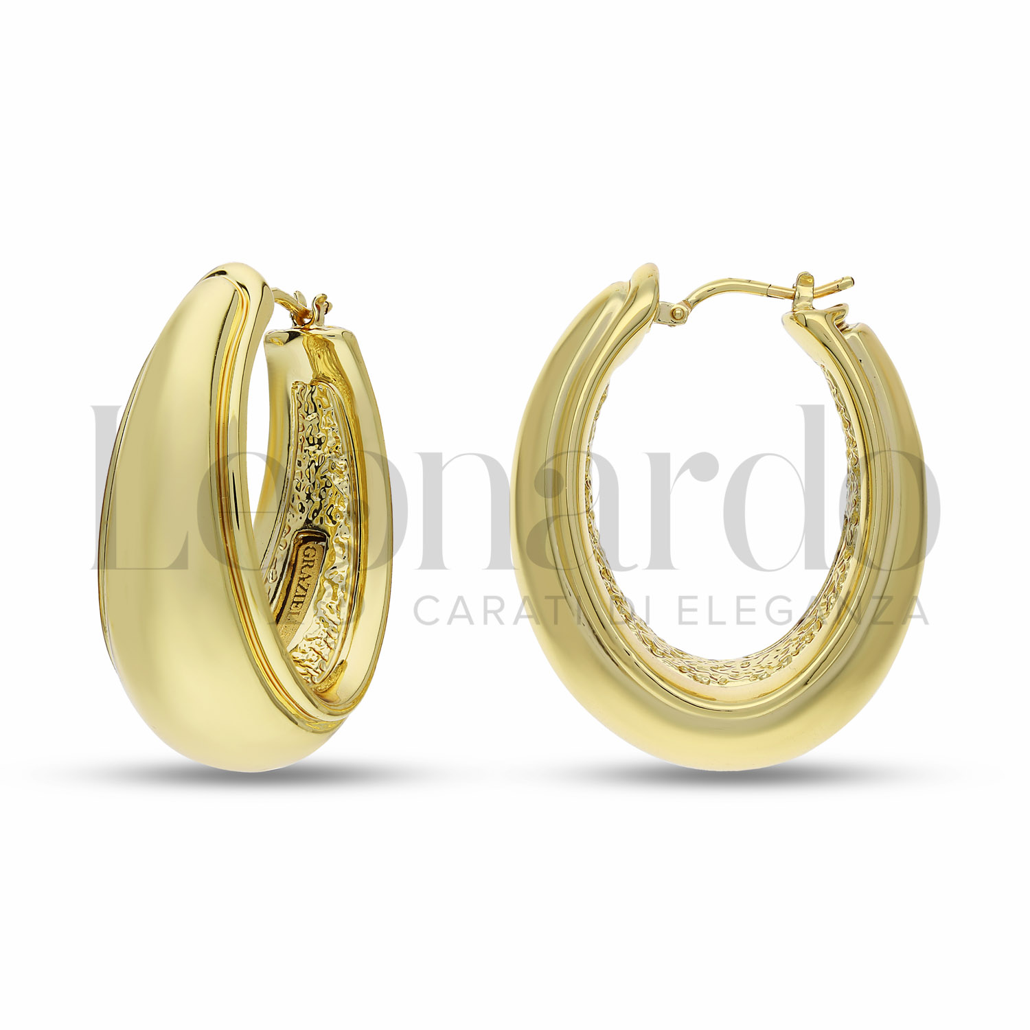 Orecchini a Cerchio da Donna, di forma ovale, Air Collection, realizzati in Elettroformatura, canna da 8 mm, diametro 20x25 mm, finitura lucida in Oro Giallo.